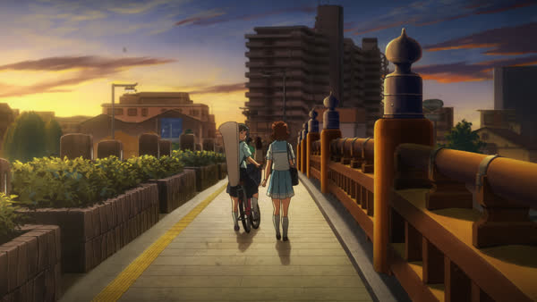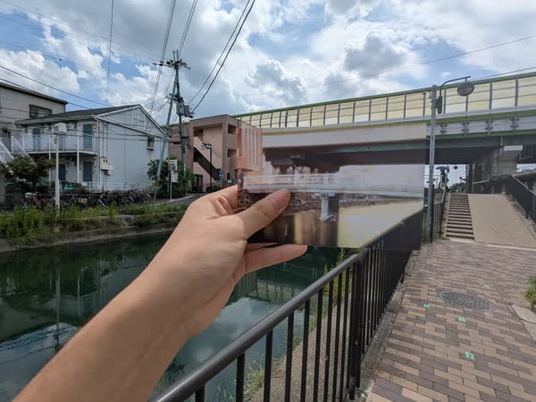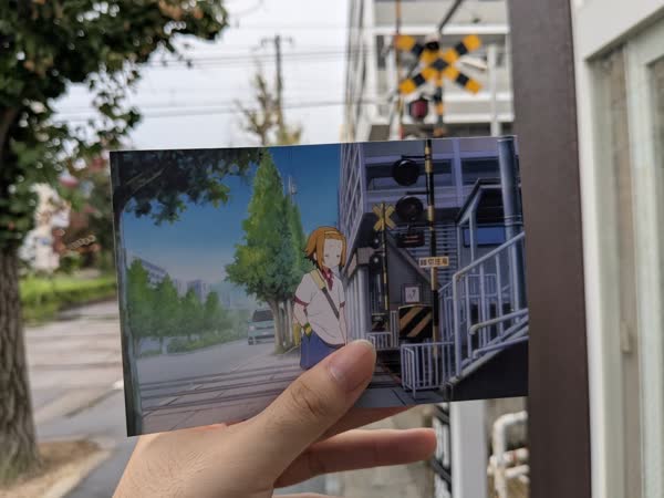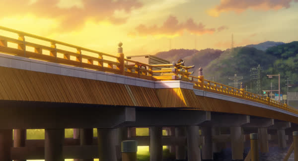 雖然都沒在這兩張內,但新大橋實際上雕像與牌子都在更右側一點,不得不承認動畫有些失誤。