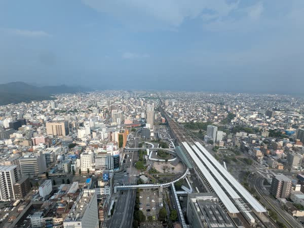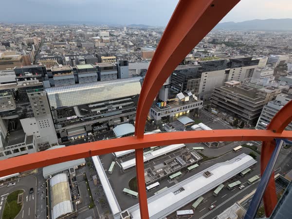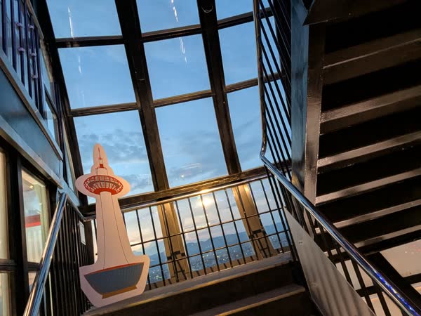 觀景台是一個平台,有圓形的草坪,邊緣往下的階梯後最外面有玻璃牆,這樣的設計實在很厲害,在沒看到階梯時會感覺彷彿走到平台邊就會掉下去一樣,有無邊際的感覺。可以看到中部電力 Mirai Tower與街景。