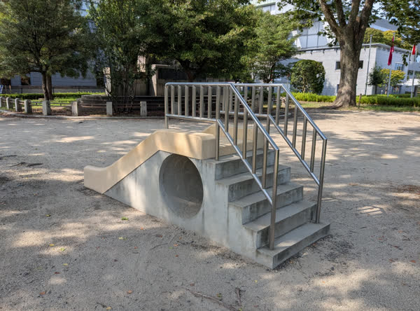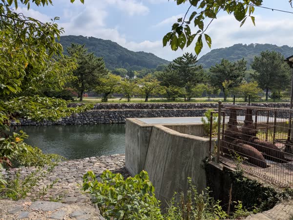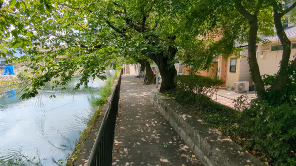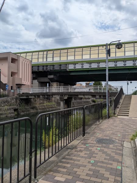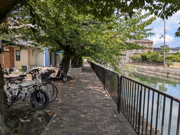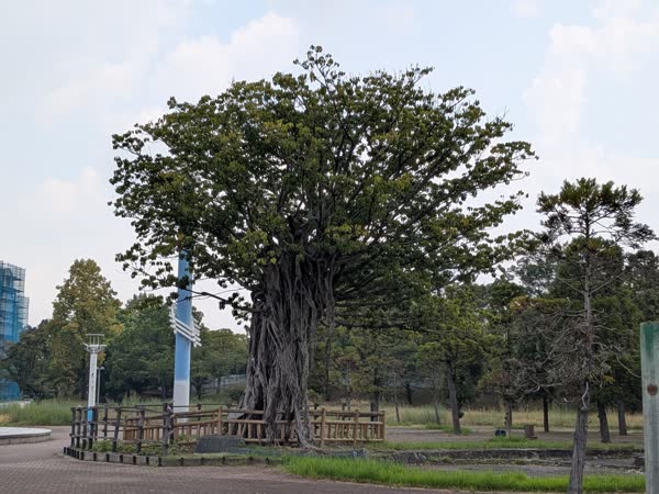 另外我原本根據東邊河對岸的街景,以為アコウの木是在圍籬外,但其實中間圓環部分恰好被圍籬切開,所以是在圍籬裡面。幸好圍籬不高稍微把手舉高就能拍到照片。