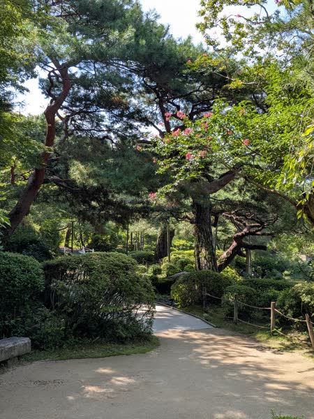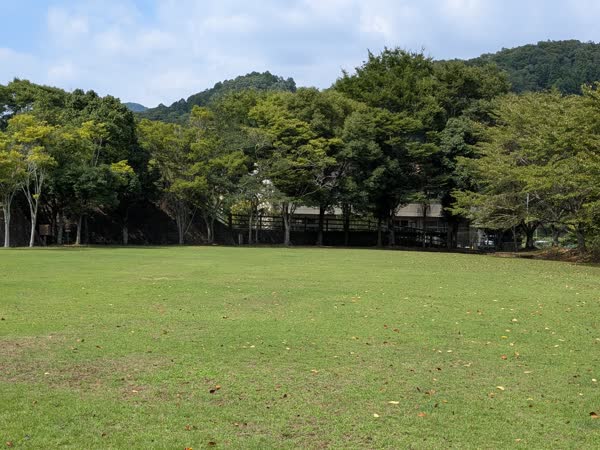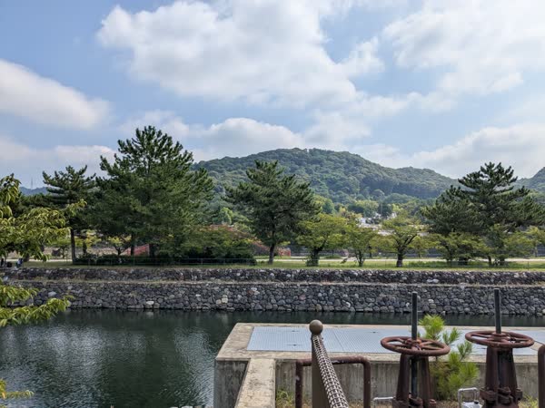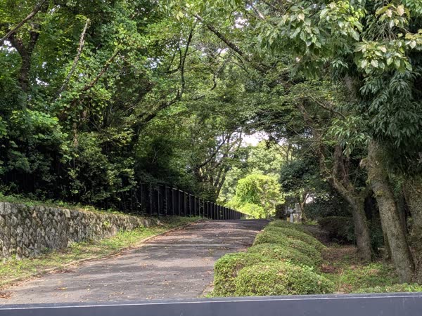 平等院南側,這邊也有個出入口,樹修剪得很高,不然大家在外面就把平等院看完了還怎麼賣票(這邊其實看不到,但久美子ベンチ那邊確實灌木滿高的)。