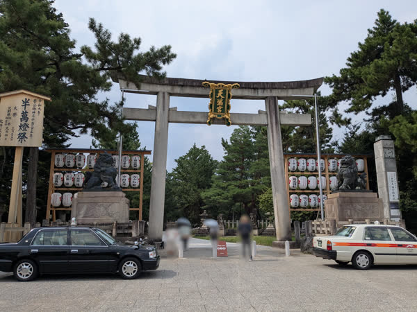 走過熱田紀念橋再走一陣子就到了熱田神宮,不過我在過馬路時走下面的地鐵站,剛好順便上了一下大號,免治馬桶真的很好用。走到入口的途中,看到有「愛車のお祓い」的牌子,汽車、自行車都可以,甚至走過去會先經過車輛專用的入口,日本真的很車本。後來在京都的北野天滿宮好像也有看到為車驅邪的小神社,但似乎沒地方開進去,也許是帶著鑰匙進去吧XD。
