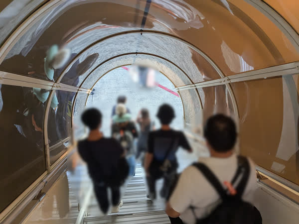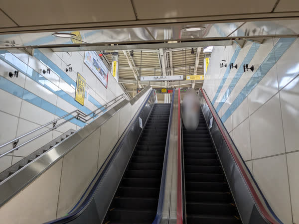 進地鐵站時剛好是早高峰,幸好那站是出來的人很多。日本人真的很守規矩,走道寬度只容納得下兩個人,但他們全都排成一列,空出左邊給下去的人走,明明就只有我一個觀光客在走左邊。排隊隊伍非常長,到地下層大概還排了三五十公尺左右。