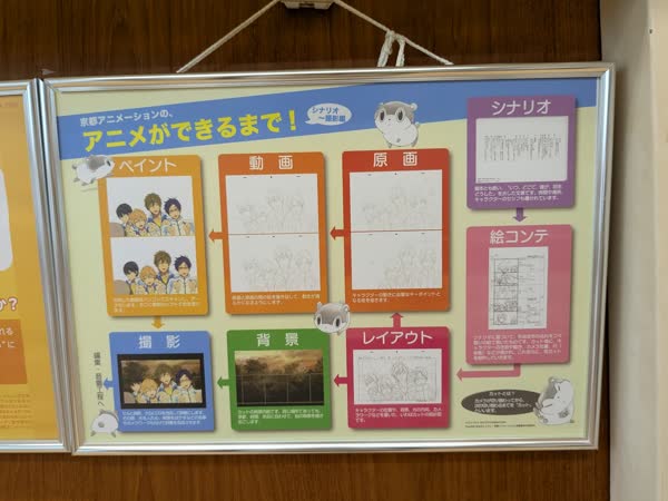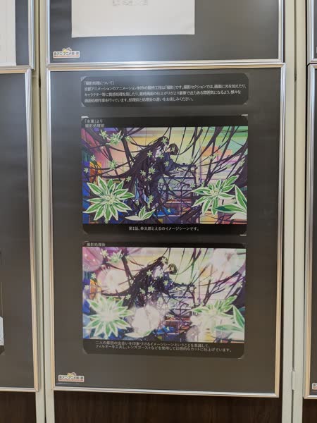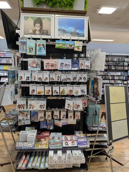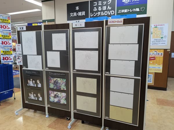 會來三洋堂書店當然是因為京阿尼的原畫展,查過二三樓都有在展示,並且二樓有京アニショップ!お取扱い店舗。進去才發現是在原畫都是放在賣場的入口,總共有6+1與8面的板子,每一面貼了二到三張原畫或是攝影效果的展示。