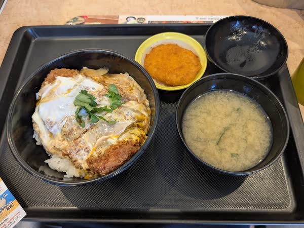 進松のや後,點了 690 元最一般的炸豬排丼飯套餐,把餐券和折價券一起給店員就行了。在大阪整路都是帶著行李箱逛街的。
