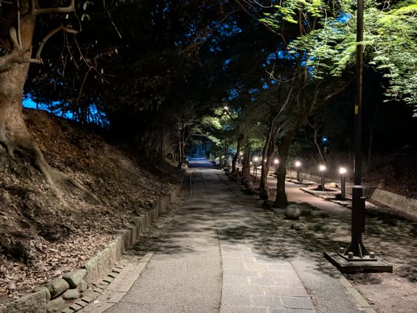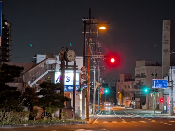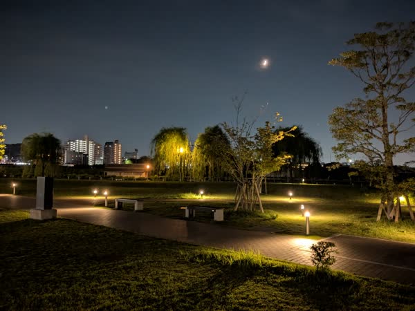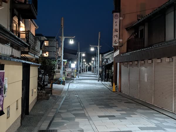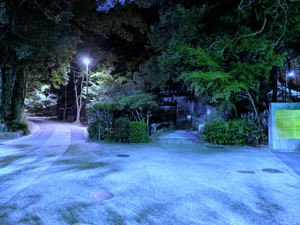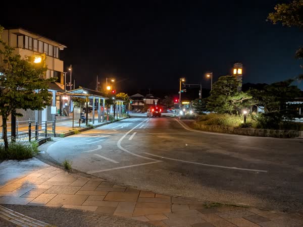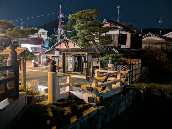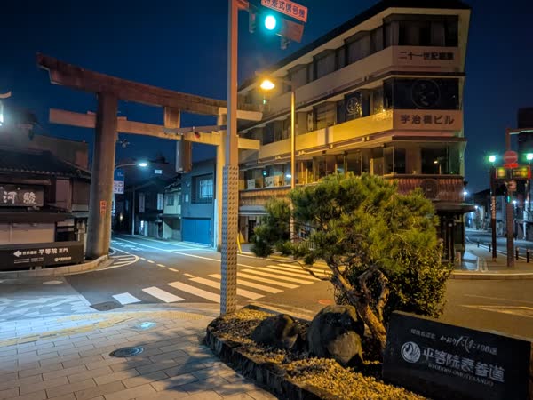 首先起來拍了一下深夜的宇治,有點想拍星星,不過 Pixel 放了好久也不跳出星空模式,所以只好用一般的夜視模式。