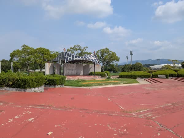 在出口等了一段時間終於等到謝一,不知道為什麼他從別的出口走過來而已卻花了好久,名古屋早上剛下了一陣小雨,地面濕濕的加上太陽照射使得非常蒸し暑い,感覺度秒如年啊。我從一開始就只打算在名城公園遠望名古屋城,畢竟內部感覺都差不多,就展示一些文物,另外我還想看一下網路上說到的名城公園的風車(有點莫名其妙)。跟著謝一亂走一陣子後走過廣場走到南邊公園,終於看到名古屋城,在那裡我向謝一說我只想逛公園,他就去逛城堡與我分別了,我們約中午一起吃鰻魚飯。公園中心正在施工,一大圈都不能走,而且風車也拆除了,甚至從風車附近西邊的遊樂器材走到地鐵出口也得繞一大圈,真的很衰。