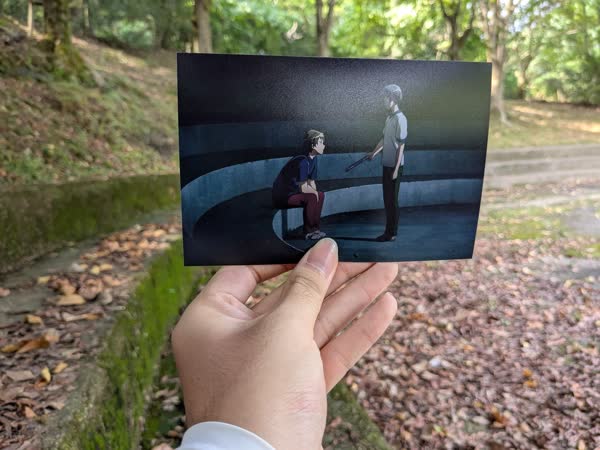 趁沒人我再拿出圖片拍了幾張照,雖然動畫是晚上,但果然還是白天更適合拍照。