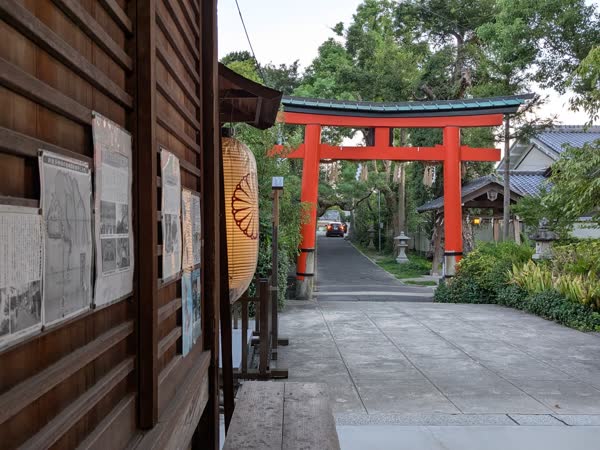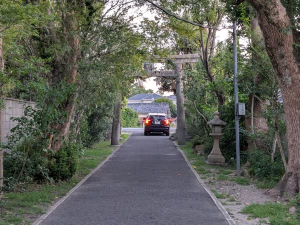 府道三號這邊是比較新的鳥居,可以看到販賣機是很顯眼的粉紅色,上面寫著「結緣、女性守護…的縣神社」,是縣神社的特殊外觀。