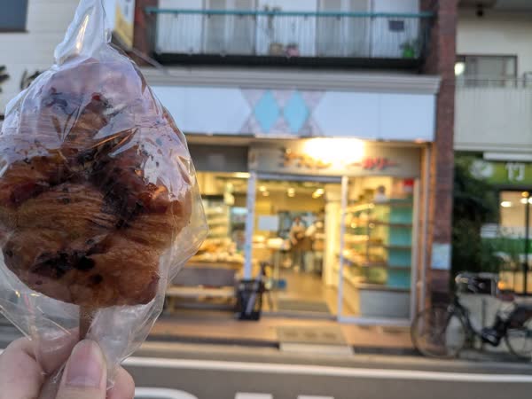 旁邊就是商店街,我們兩個都不是會逛街的類型,所以就很快的通過。我有進去一間藥妝店找我媽託我買的東西,找了一下沒找到後直接拿圖片問店員「すみません、これはありますか」,他想了一下回答我沒有,我回應「そうですか」。