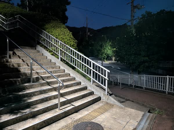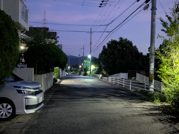 畫面看起來滿亮的,不過其實沒有路燈的地方還是很暗,我有拿出手電筒照了一下。