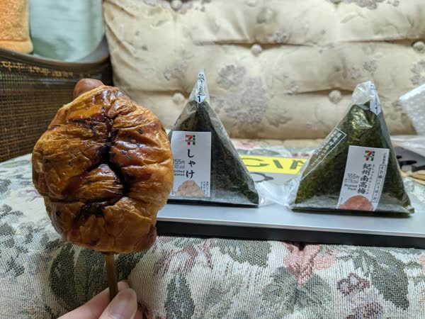 在上面吃了一下飯糰,梅子那個就真的只是梅子,酸酸的會流一點口水,感覺不怎麼好吃,我比較喜歡吃肉的。