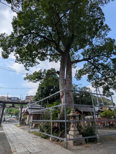 神社裡面有一棵非常大的御神木(宇治市名木百選 むくのき)。