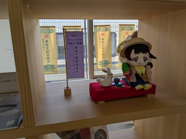 謝一這趟很喜歡到處收集吉祥物,所以他託我買了一個白鳥守,看起來還不錯。