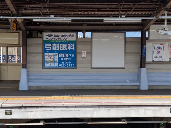 我一直在觀察窗外的景色,我發現車站的廣告清一色都是醫院、診所的,京吹也是在六地藏站那個弓削眼科的廣告一直放在那邊應該有十年了吧。有點好奇這個的原因,是因為台灣禁止醫療院所宣傳所以才沒有這樣嗎?感覺有點可能是這樣。