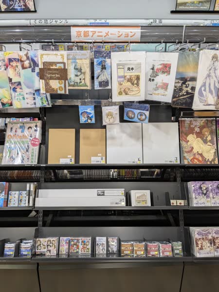 在看完原畫並為每一張拍照後,我逛了一下二樓,有很大片的區域是在賣 DVD,我找到一櫃全是京阿尼 DVD 的,老作品非常齊全,甚至 MUNTO、驚爆危機的兩部等等都有。