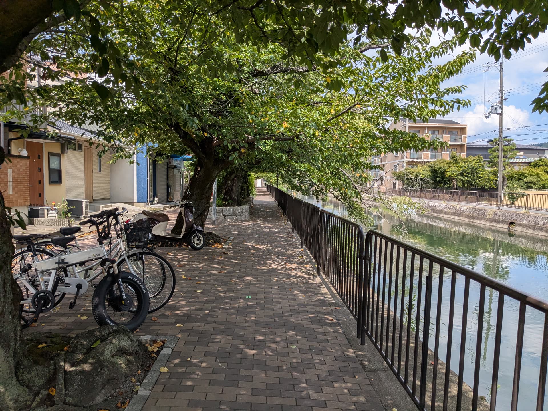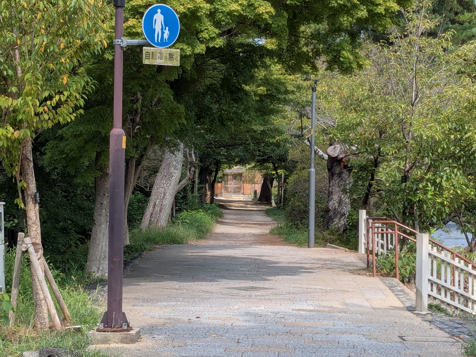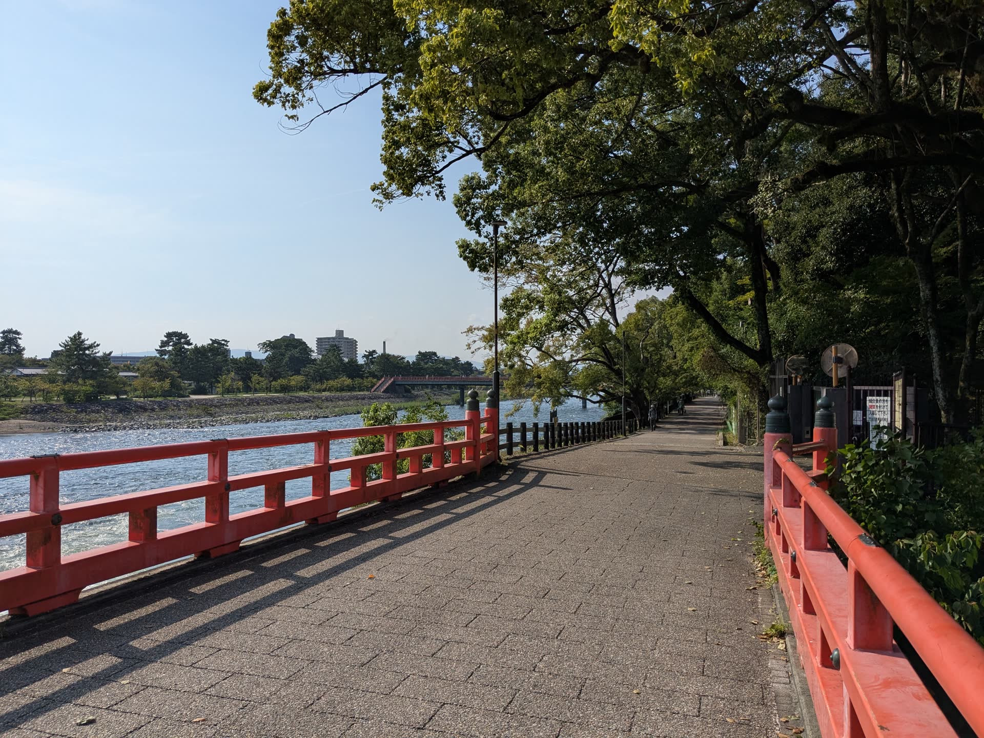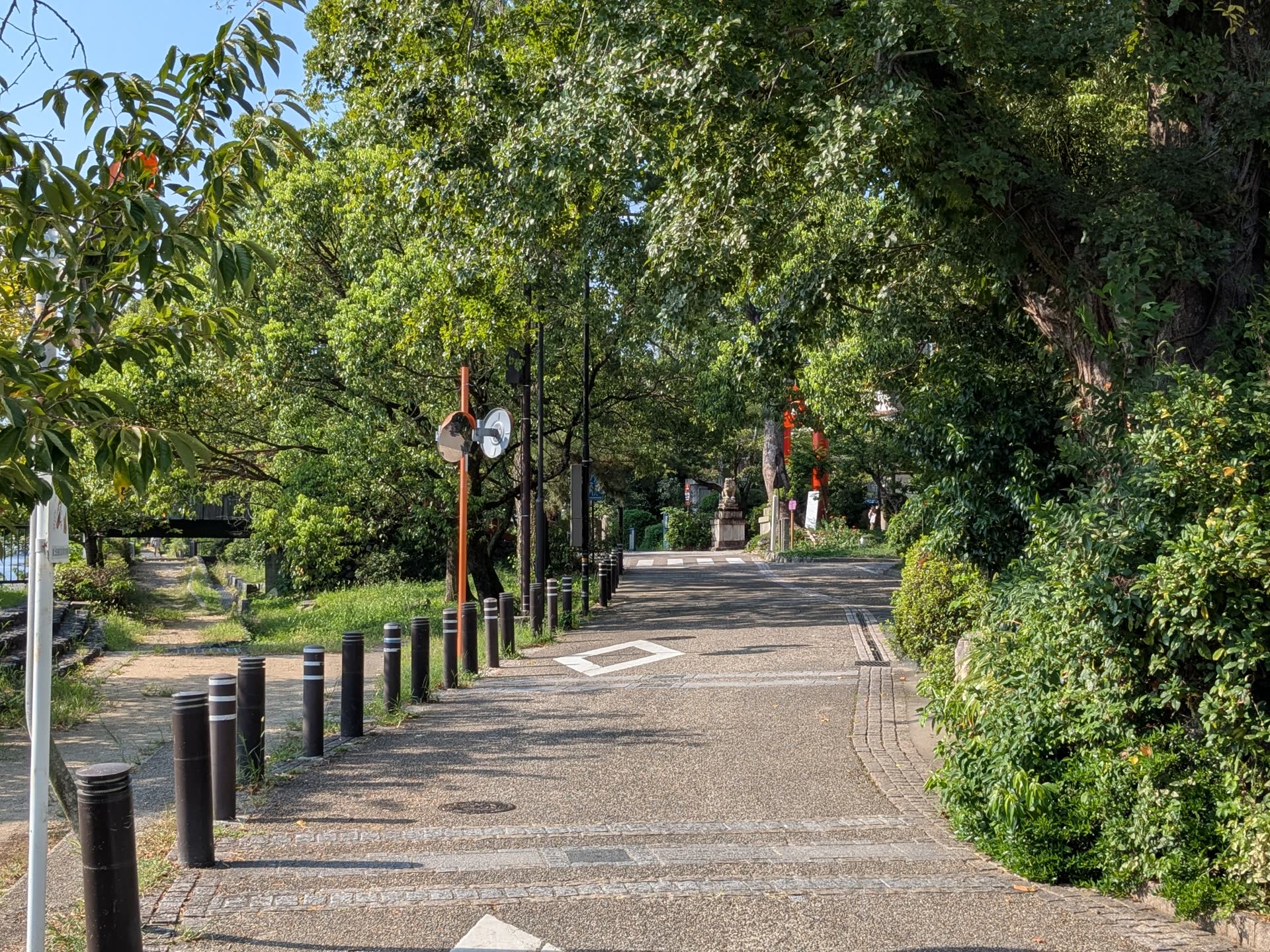 另外我原本根據東邊河對岸的街景,以為アコウの木是在圍籬外,但其實中間圓環部分恰好被圍籬切開,所以是在圍籬裡面。幸好圍籬不高稍微把手舉高就能拍到照片。