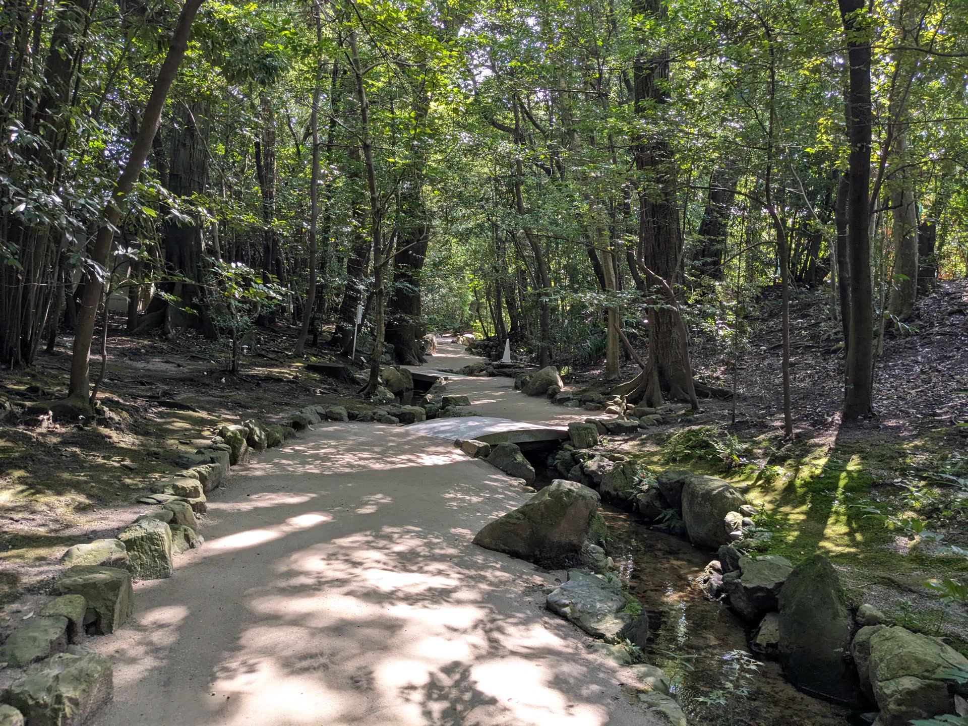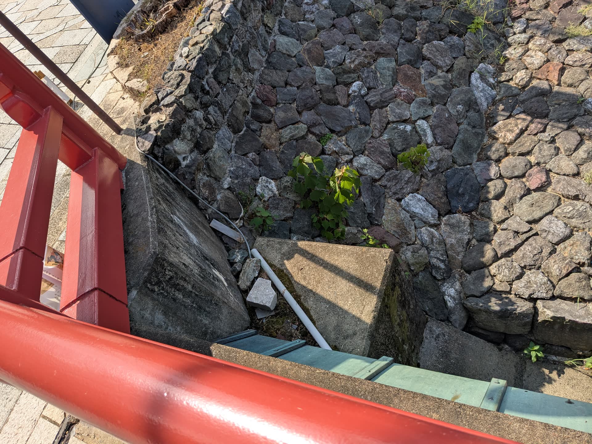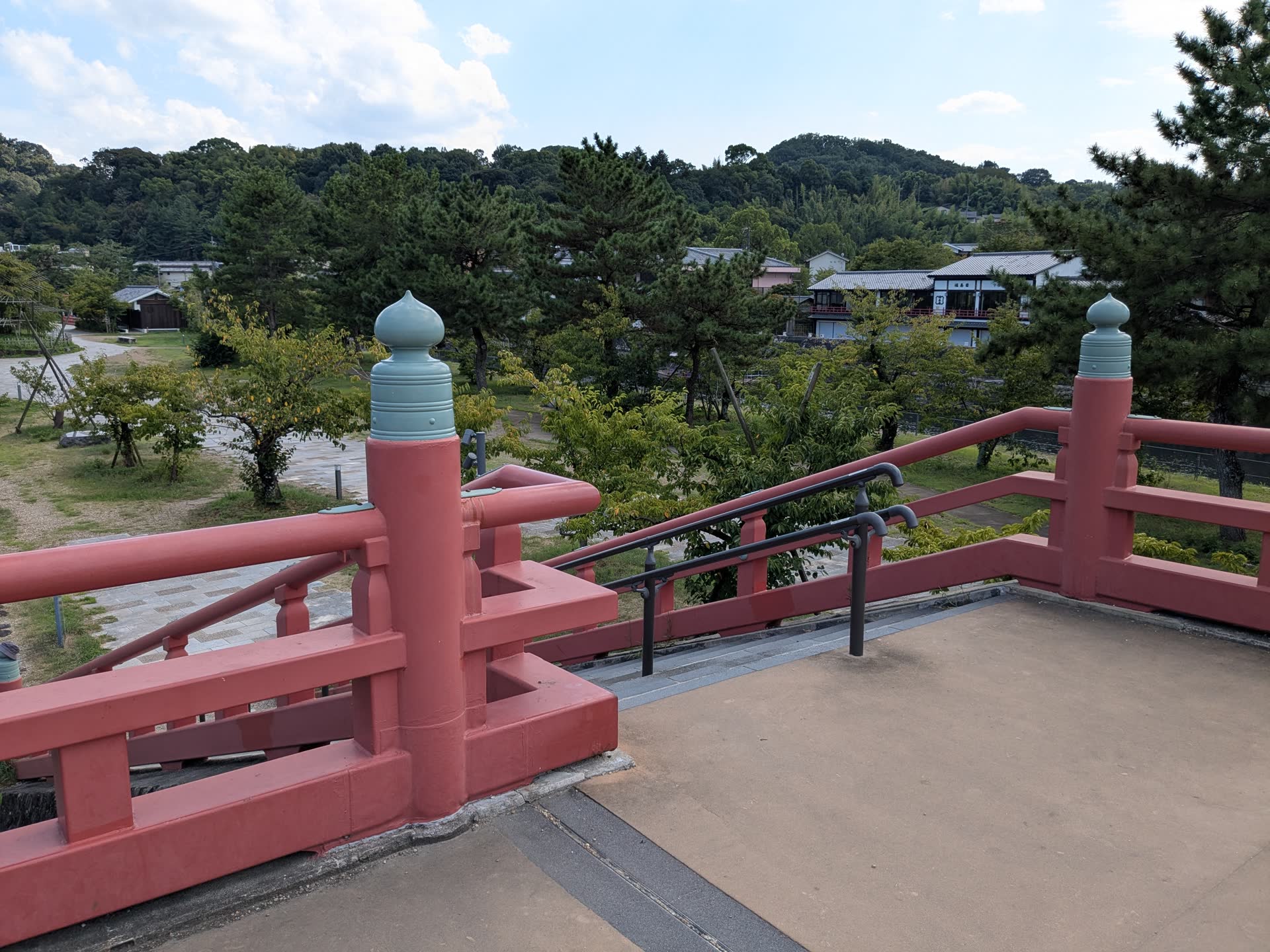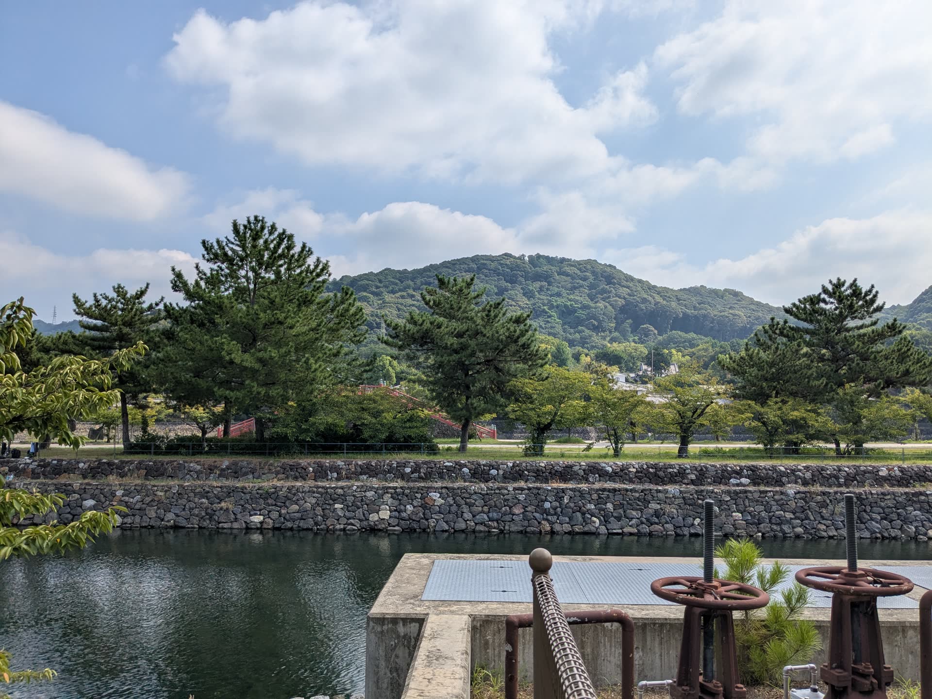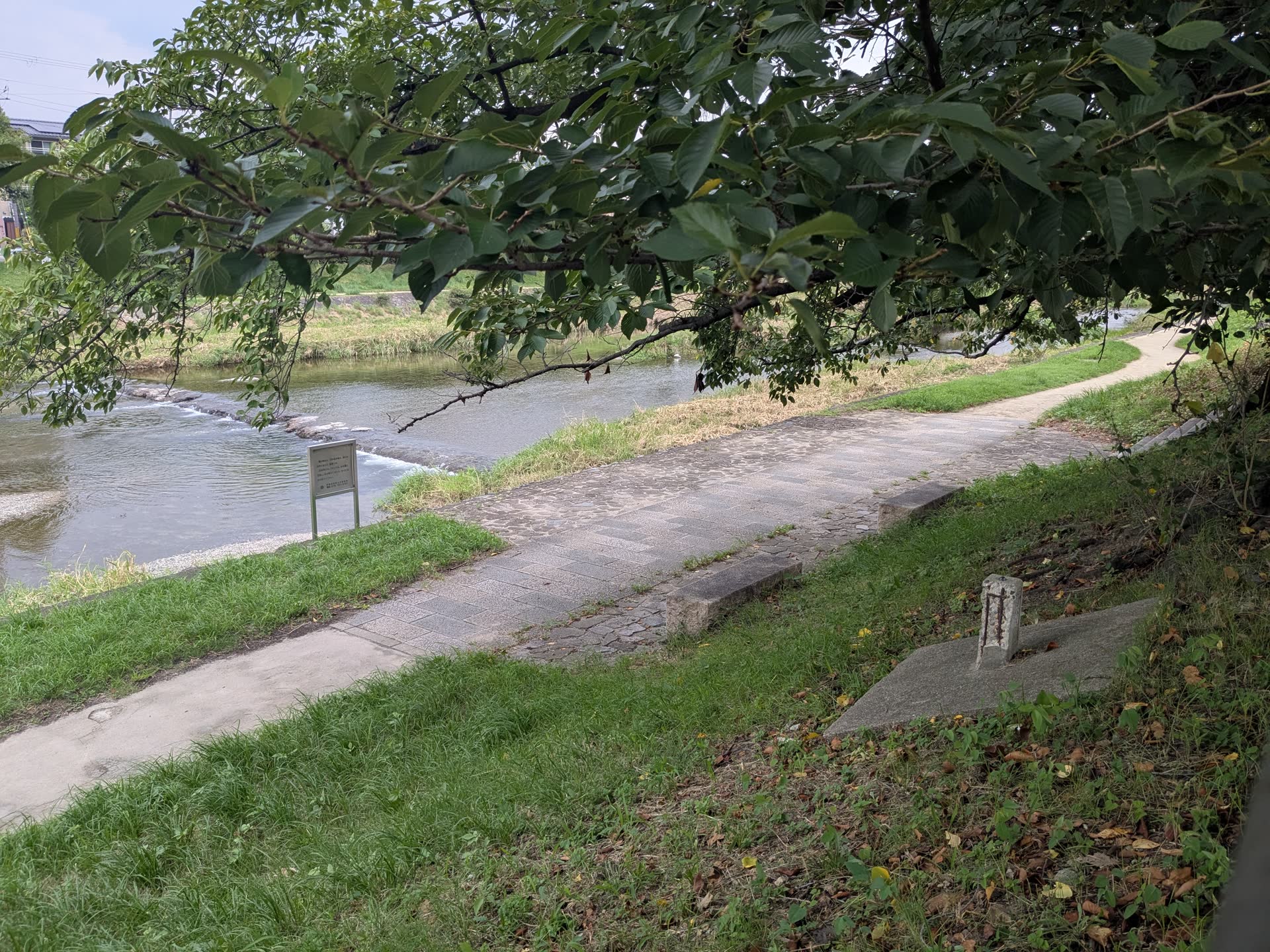 另外我原本根據東邊河對岸的街景,以為アコウの木是在圍籬外,但其實中間圓環部分恰好被圍籬切開,所以是在圍籬裡面。幸好圍籬不高稍微把手舉高就能拍到照片。