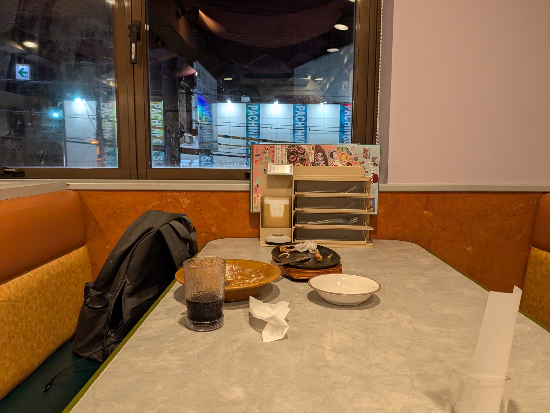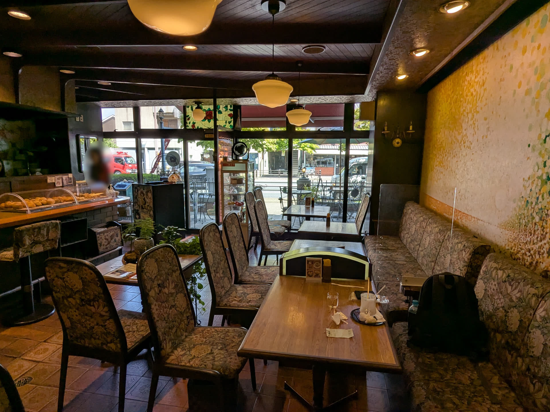 現場貼告示寫著在外面排隊之後會帶位,不過既然沒有人在排隊我想應該先進去看看有沒有位子,幸好有。我斜對面坐著一位老爺爺,正在看報紙,餐點吃得差不多了。