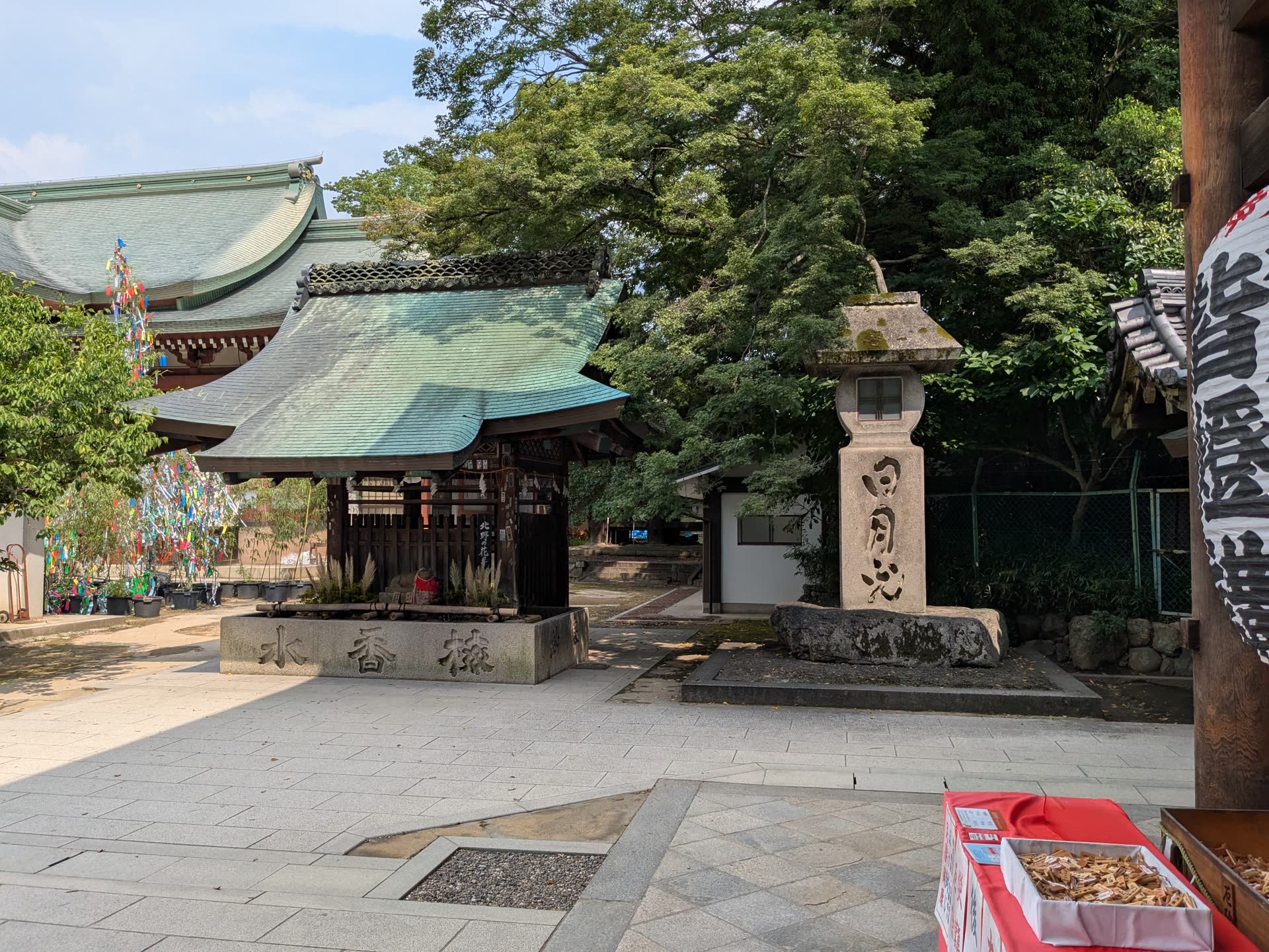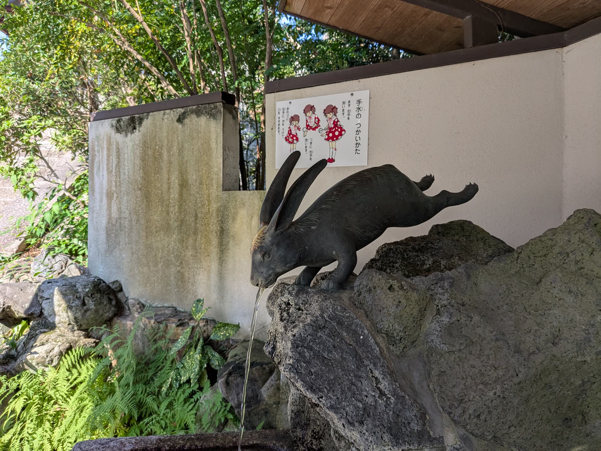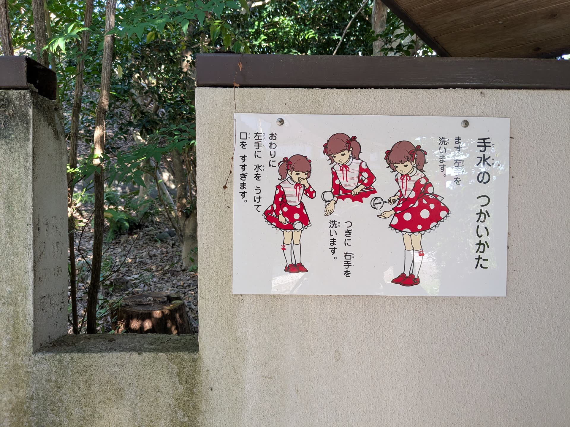 南側這邊的手水舍上面寫著「縣井」,與陷阱同音XD