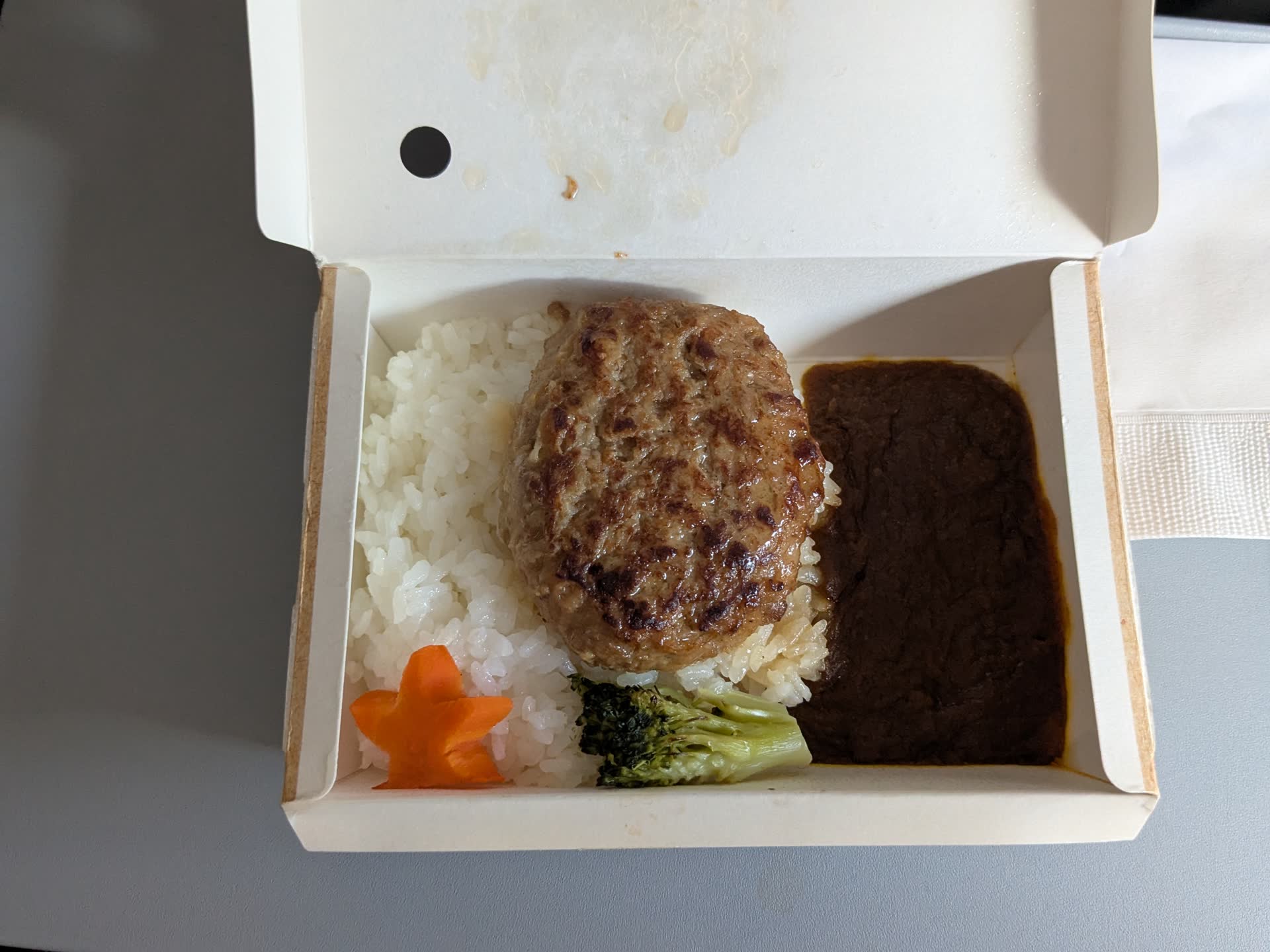 此時空服員就開始發餐點了,我選的是漢堡排咖哩(加購時在網路上就選好了),飯黏黏的,不怎麼好吃,對比之下亞航的椰漿飯真的很值得。份量很小三兩下就解決了。