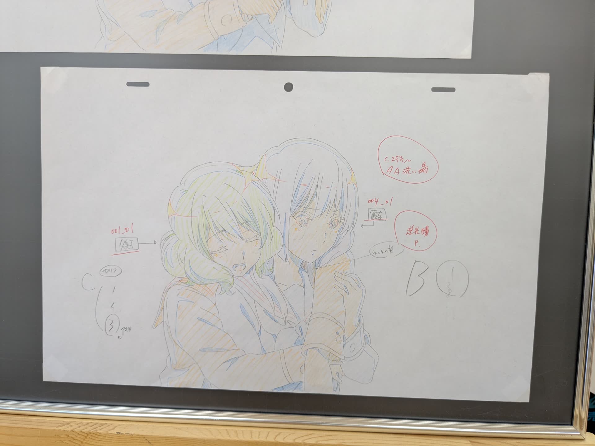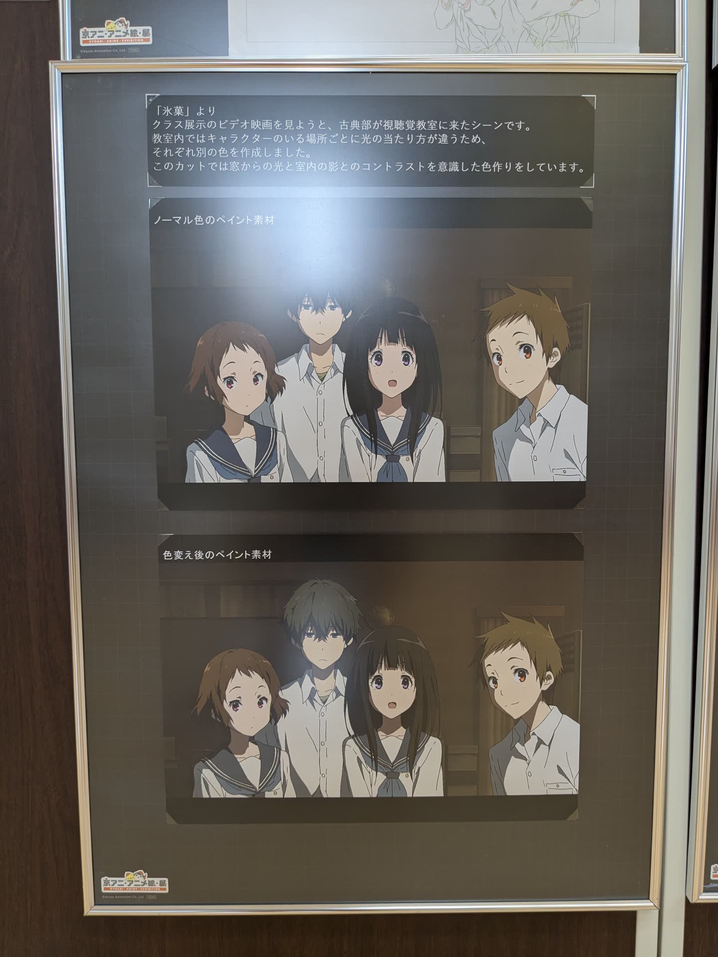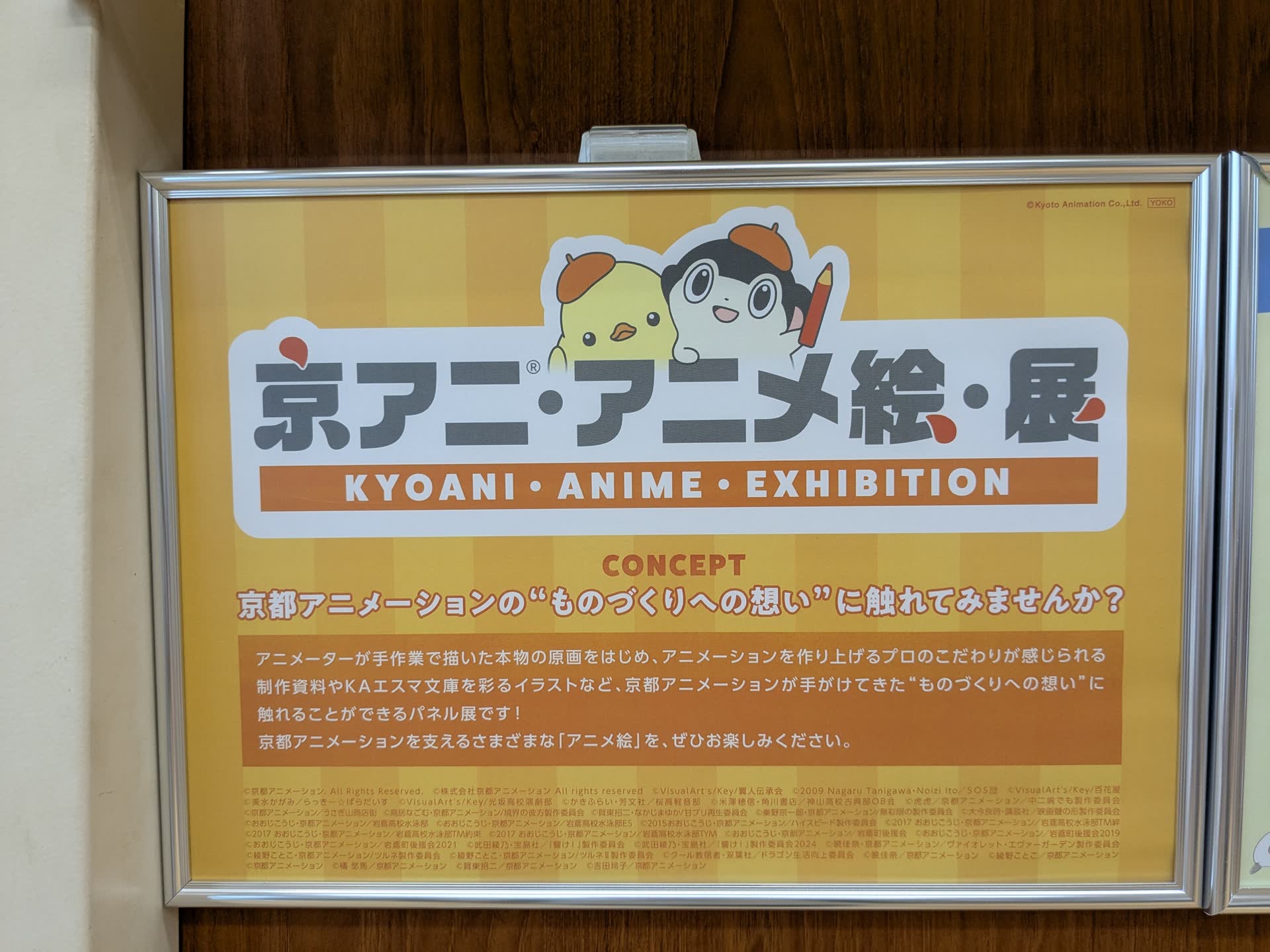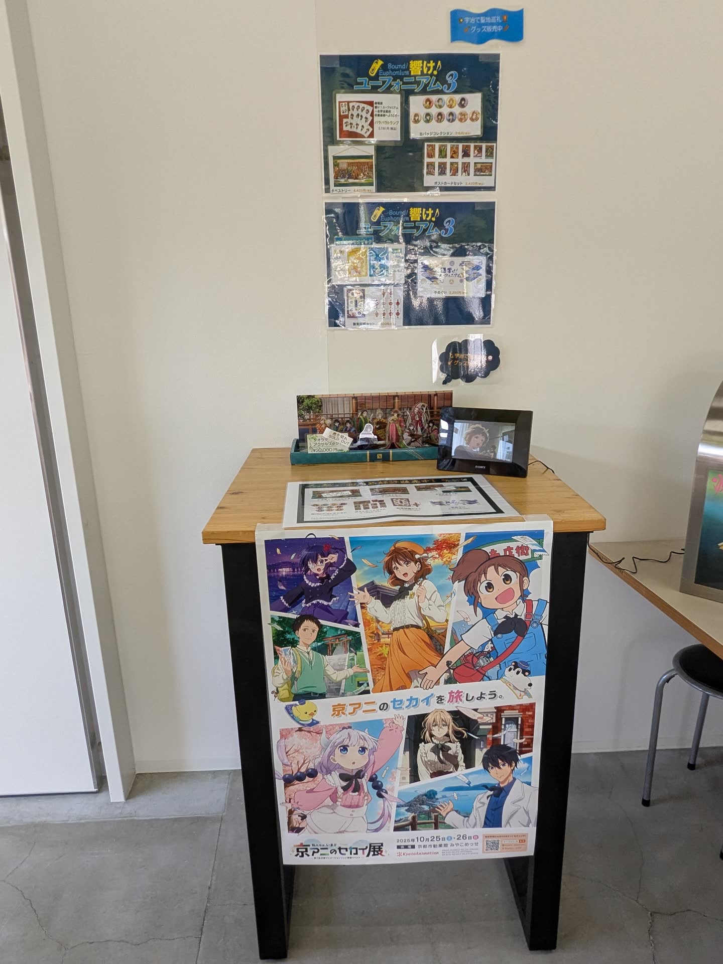 會來三洋堂書店當然是因為京阿尼的原畫展,查過二三樓都有在展示,並且二樓有京アニショップ!お取扱い店舗。進去才發現是在原畫都是放在賣場的入口,總共有6+1與8面的板子,每一面貼了二到三張原畫或是攝影效果的展示。