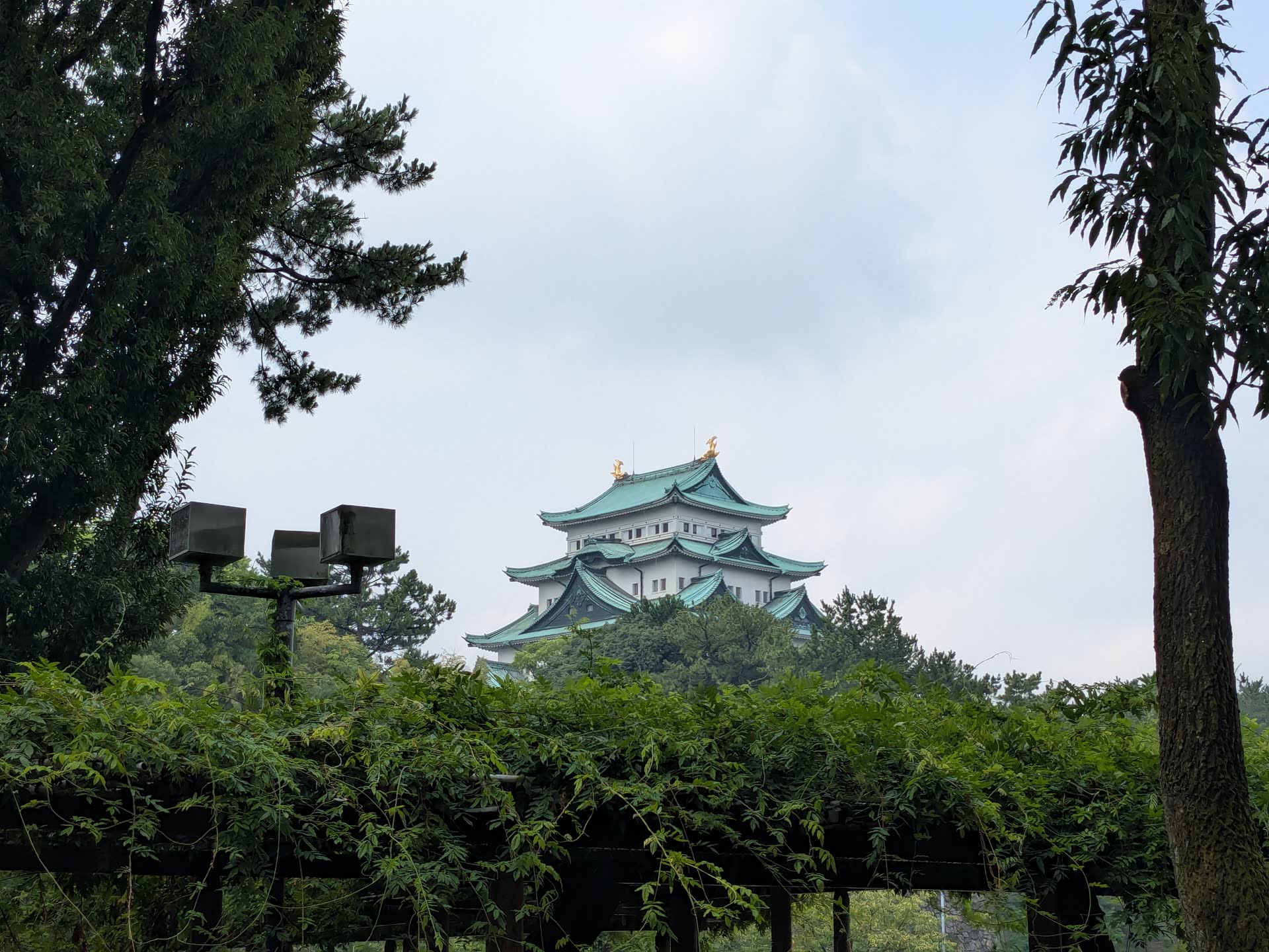 在出口等了一段時間終於等到謝一,不知道為什麼他從別的出口走過來而已卻花了好久,名古屋早上剛下了一陣小雨,地面濕濕的加上太陽照射使得非常蒸し暑い,感覺度秒如年啊。我從一開始就只打算在名城公園遠望名古屋城,畢竟內部感覺都差不多,就展示一些文物,另外我還想看一下網路上說到的名城公園的風車(有點莫名其妙)。跟著謝一亂走一陣子後走過廣場走到南邊公園,終於看到名古屋城,在那裡我向謝一說我只想逛公園,他就去逛城堡與我分別了,我們約中午一起吃鰻魚飯。公園中心正在施工,一大圈都不能走,而且風車也拆除了,甚至從風車附近西邊的遊樂器材走到地鐵出口也得繞一大圈,真的很衰。