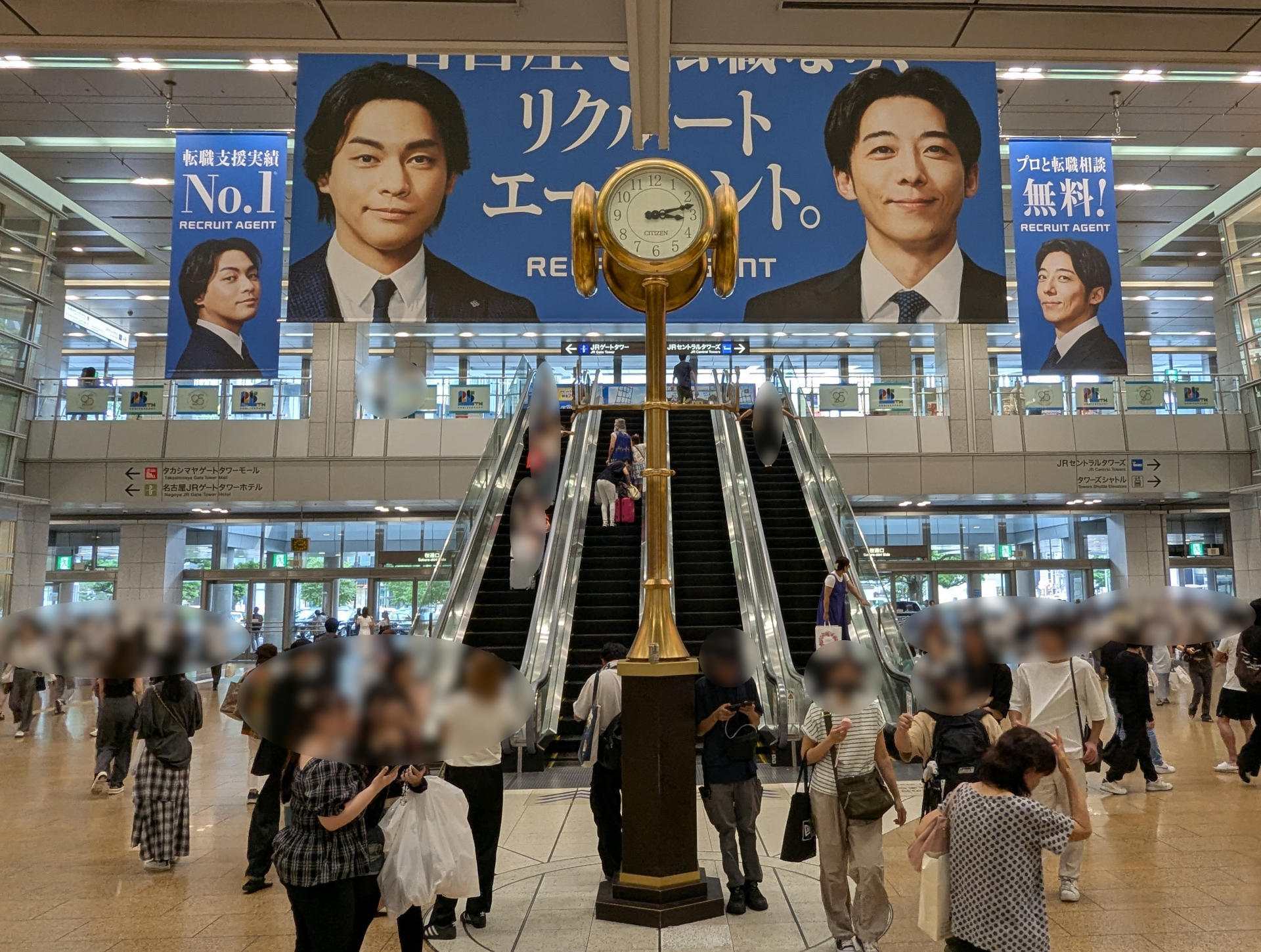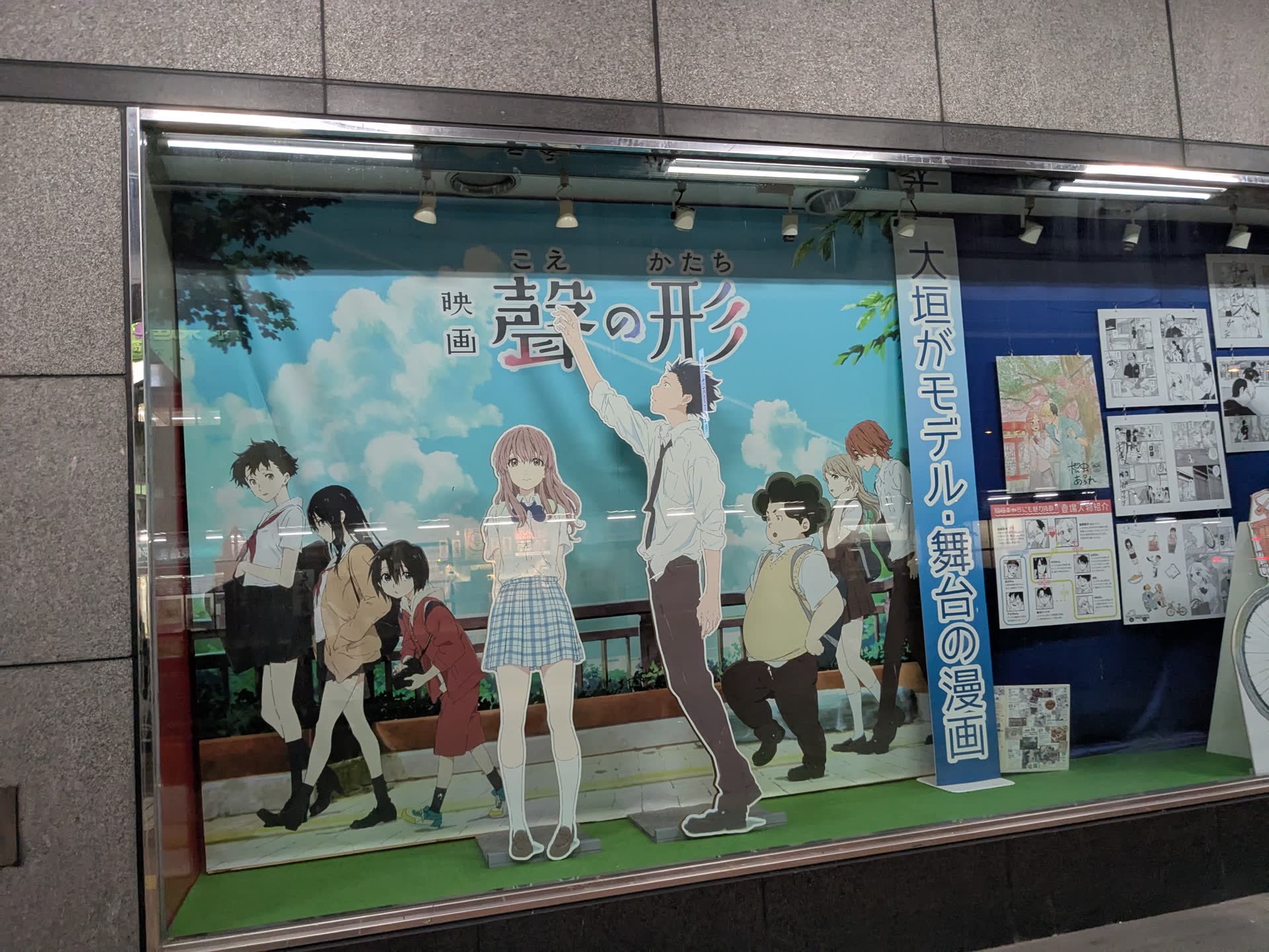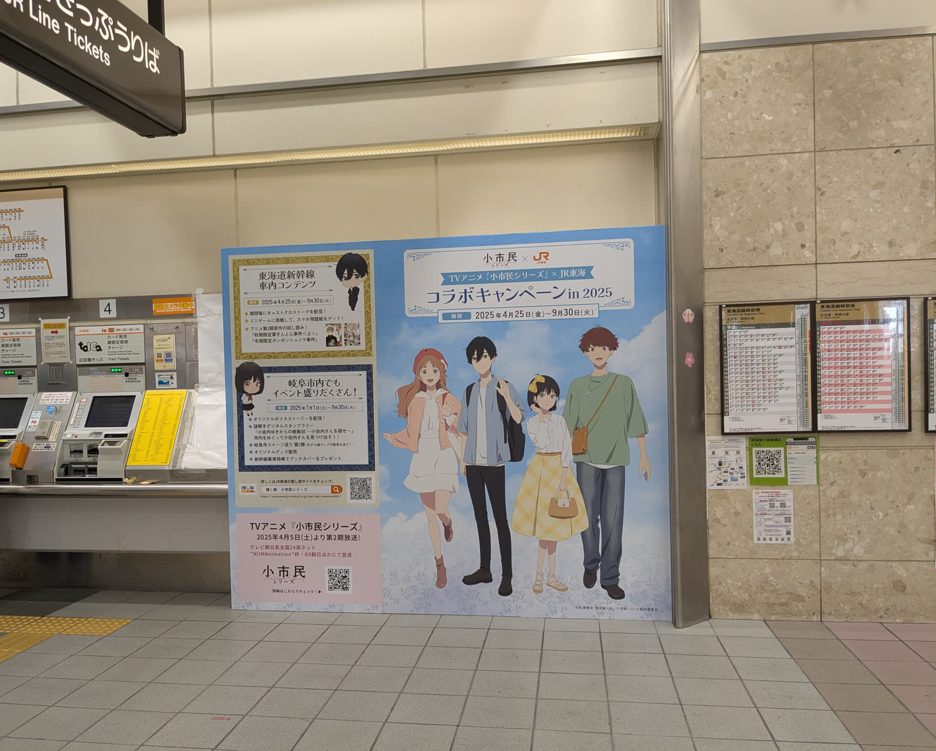 在岐阜車站我主要是想看聲之形的一些場景,比如將也過馬路時看到直花在貓咖打工發傳單的路口,以及與佐原重逢時聊天的椅子。後來在網路上偶然看到 Gifu City Tower 43 的 43 樓觀景台免費開放,所以也打算去看看。另外,我也在 JR 推し旅有在岐阜的一些地方發放小市民的聖地巡禮地圖,事前某高一同學就有說他要一份,上次在豐橋看到限制一人一天一張,所以我想這邊應該也是一樣,剛好與謝一一起拿就有兩份了。我一開始就打算拿著行李箱到處跑,因為當時只打算停留一兩個班次的時間,也就是 15~30 分鐘。而謝一因為他行李箱與背包都非常重,所以就算只停留一小時左右還是找了個コインロッカー了。