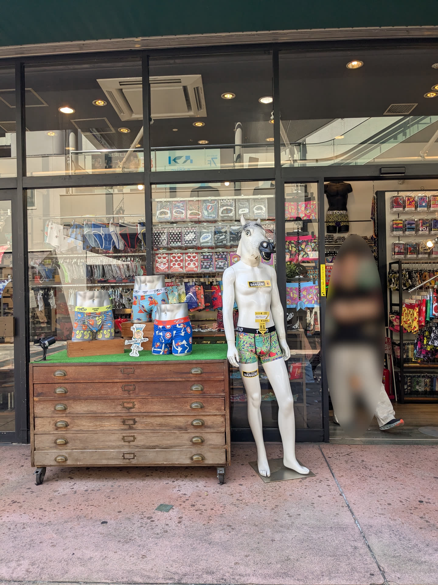 在なんばパークス一樓我看到一家賣奇怪內褲的店,人體模型上還戴著奇怪的馬頭套,大阪果然很奔放。
