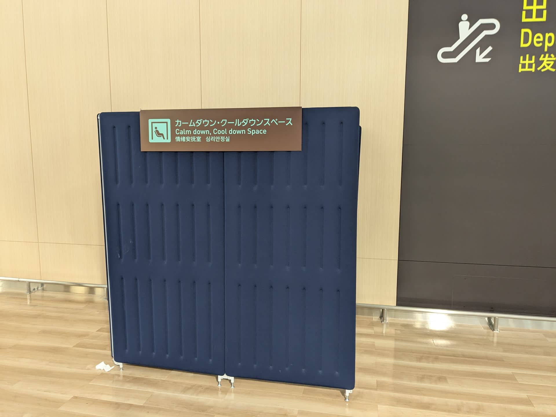 過安檢後就看到這個滿搞笑的情緒安撫室,是用很隔音的材質做的,椅子上不知道誰掉了一個鼻噴劑,我想拿給工作人員,但想想走回安檢那邊給警察好像也不太對,所以就沒有拿走。