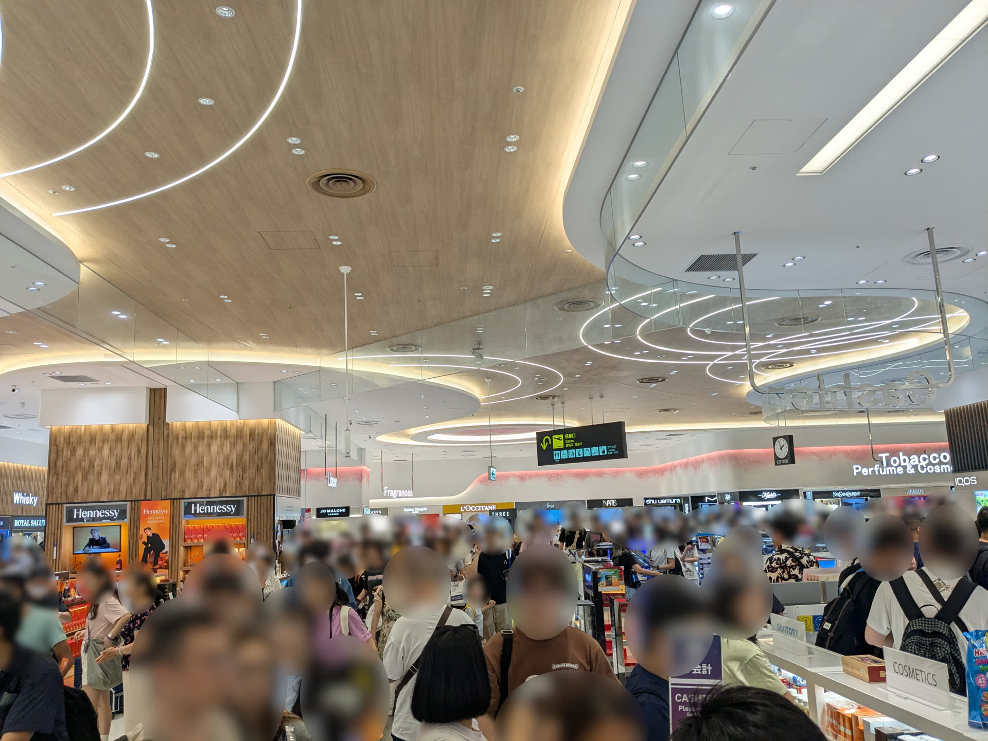 在過海關後,就看到非常壯觀的免稅店,所有出國旅客都得經過這樣像是百貨公司的小小的路,有一點塞,其他機場都沒這麼誇張。在這張照片前還繞了一下。