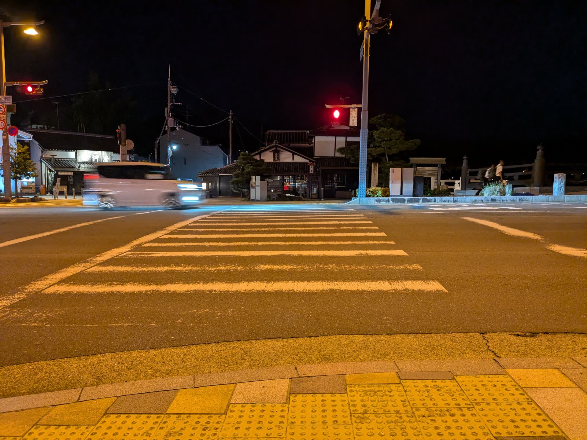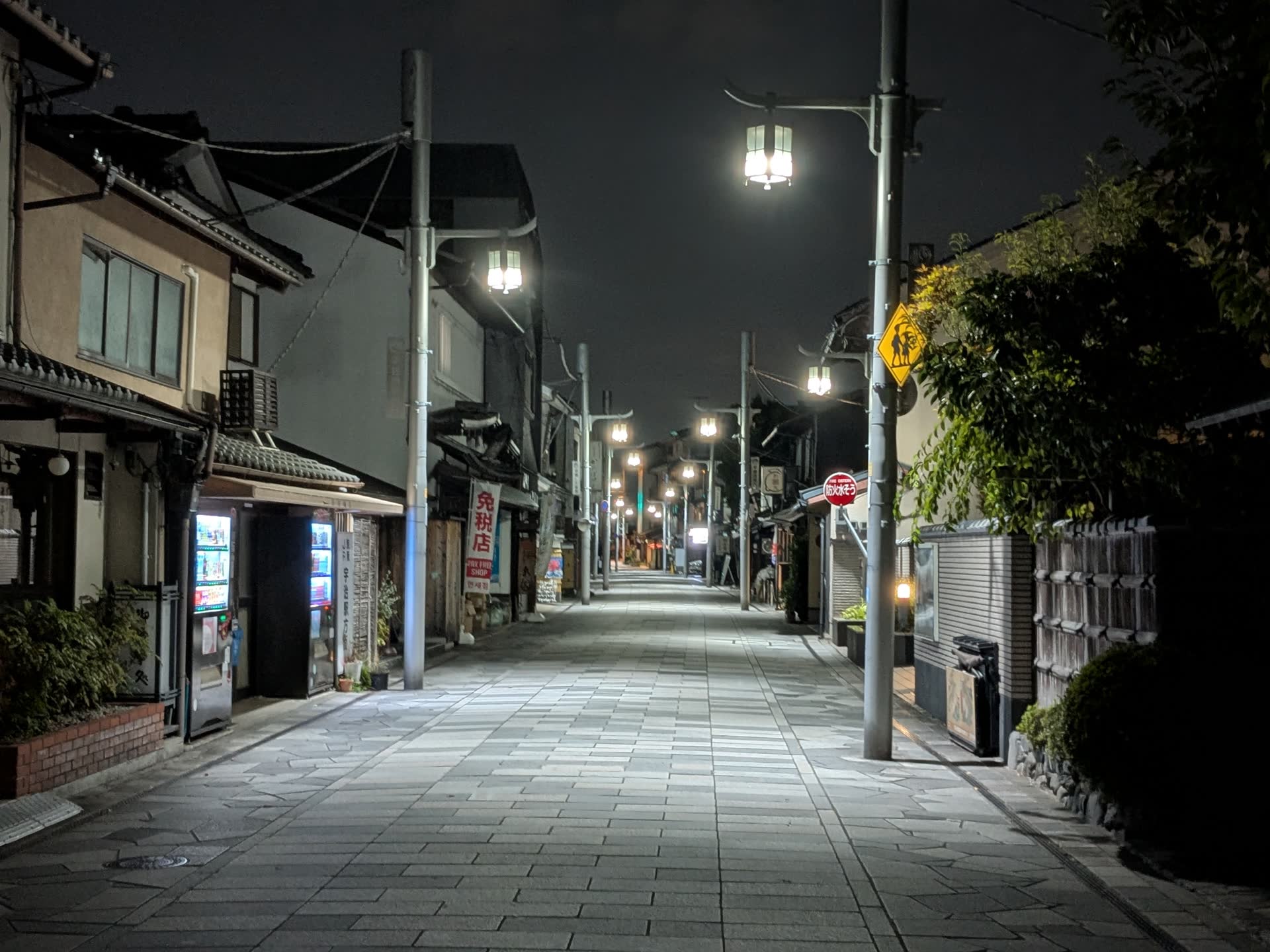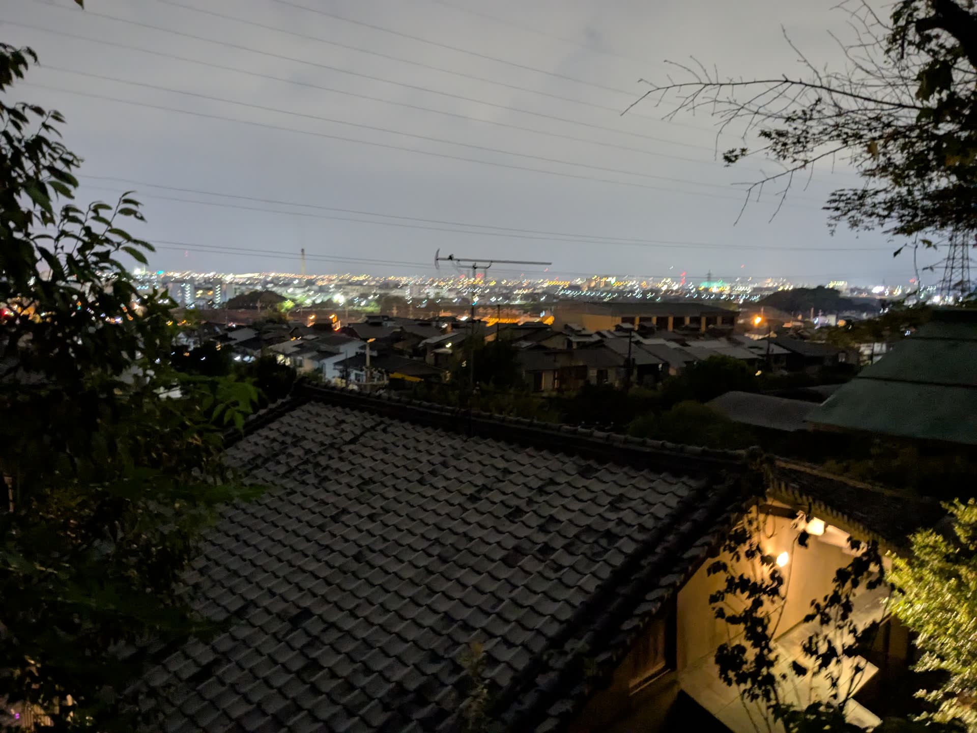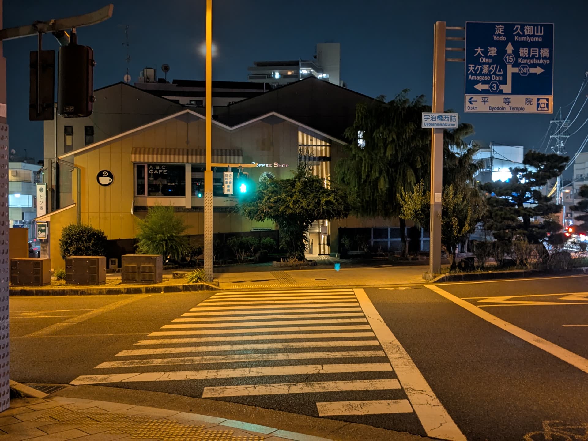首先起來拍了一下深夜的宇治,有點想拍星星,不過 Pixel 放了好久也不跳出星空模式,所以只好用一般的夜視模式。