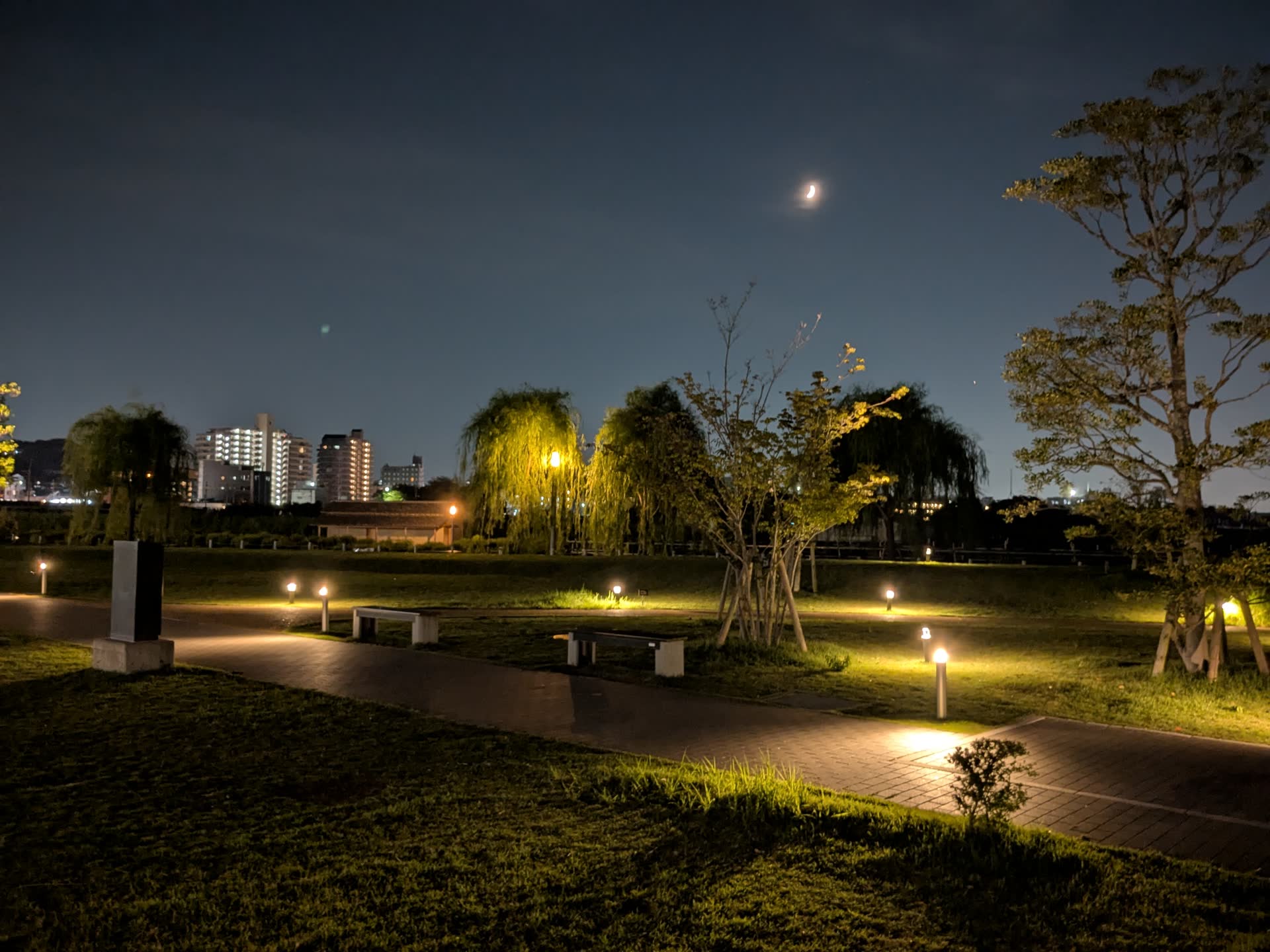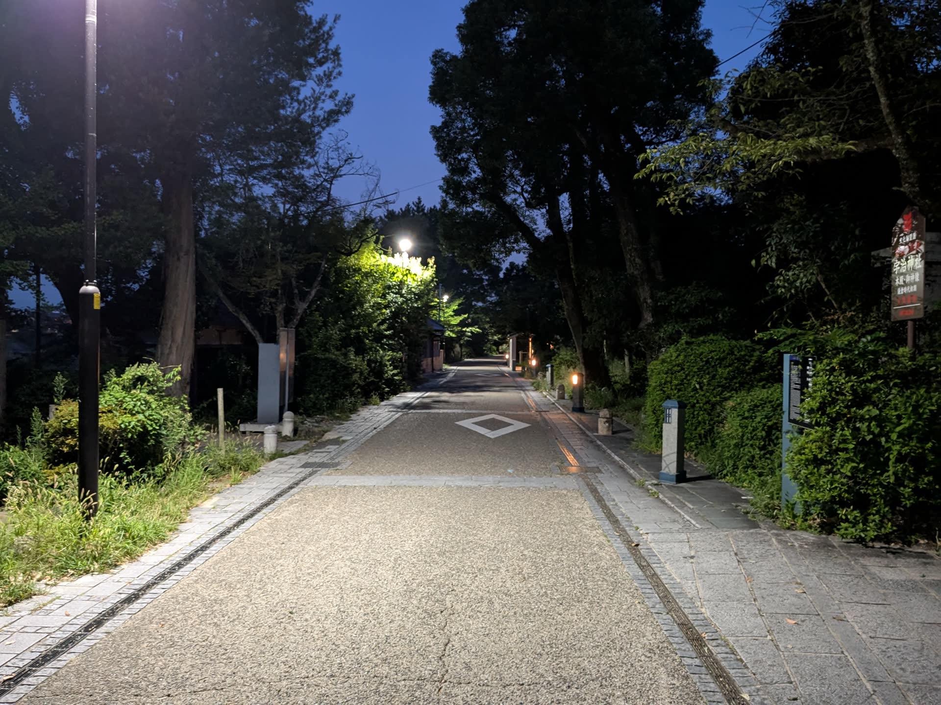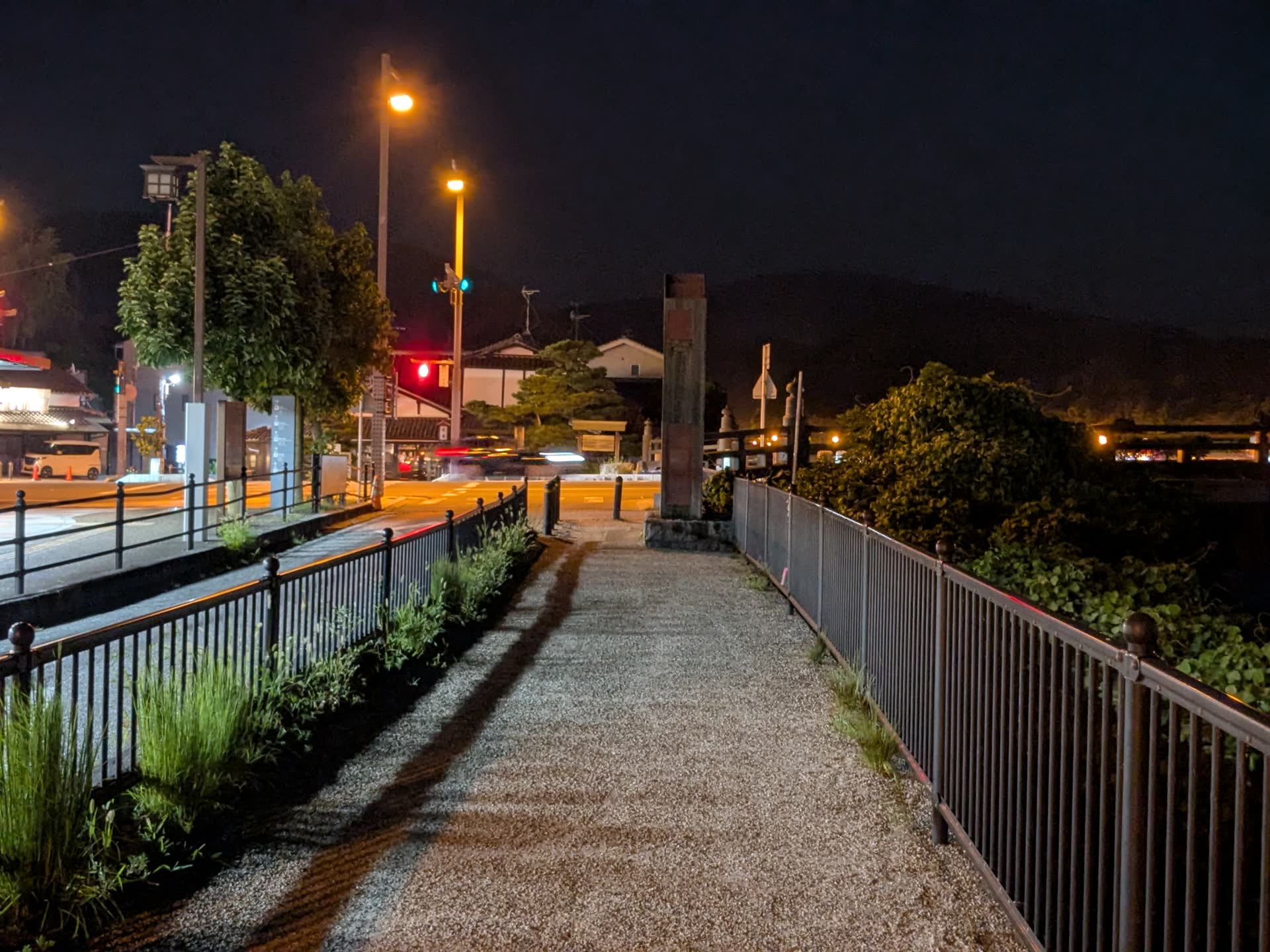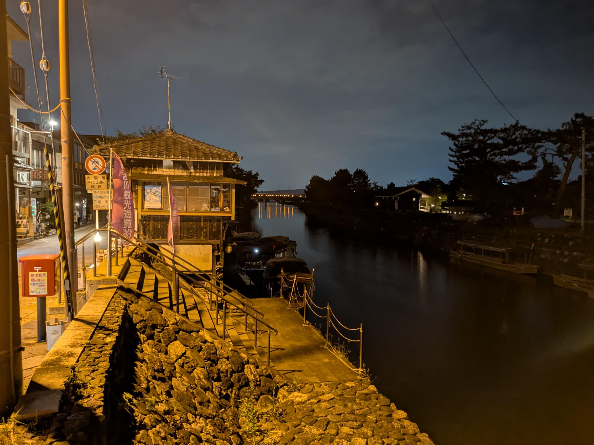 首先起來拍了一下深夜的宇治,有點想拍星星,不過 Pixel 放了好久也不跳出星空模式,所以只好用一般的夜視模式。