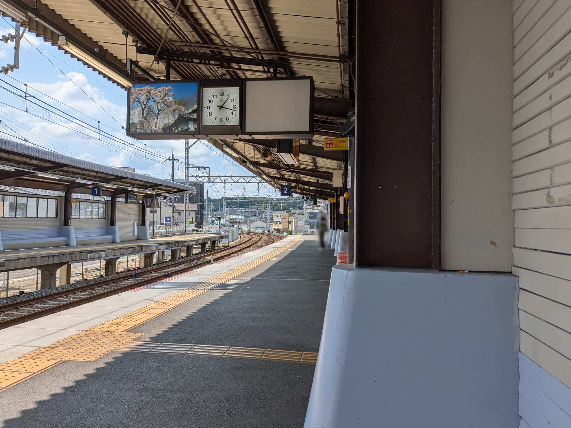 在岐阜站等車時,我看到一列車呼嘯而過,不由得感嘆這進站速度真是快,沒想到是貨車。謝一趁機科普說有貨車走的鐵軌品質都特別好,還有山手線性能很好、JR 的成田特快其實是成田特慢等等,鐵道迷真厲害。