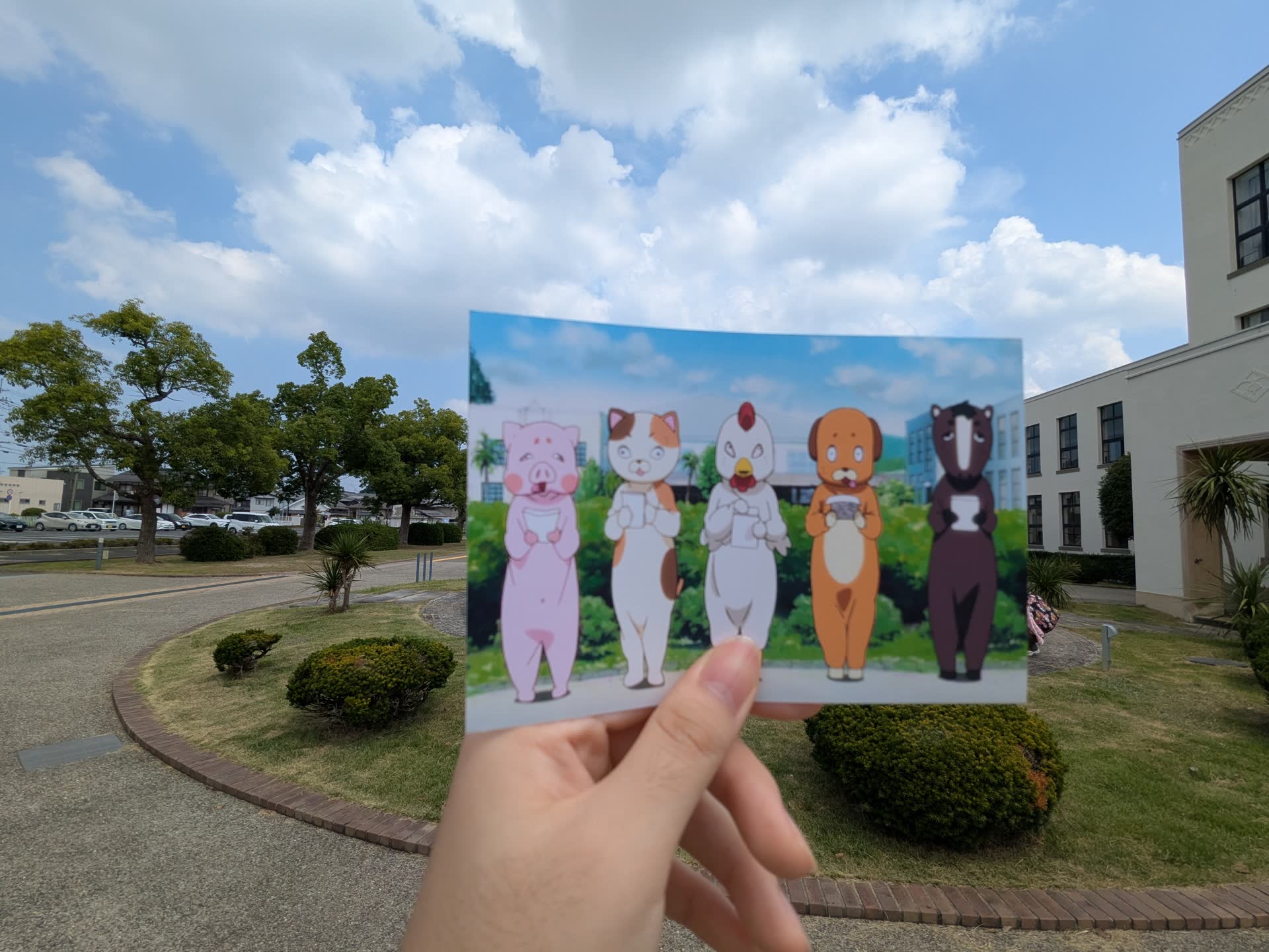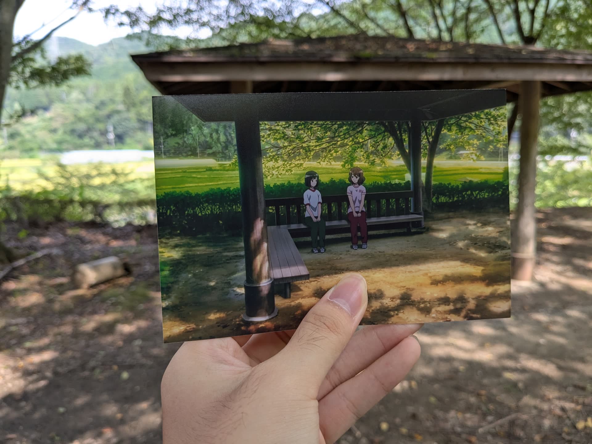 趁沒人我再拿出圖片拍了幾張照,雖然動畫是晚上,但果然還是白天更適合拍照。