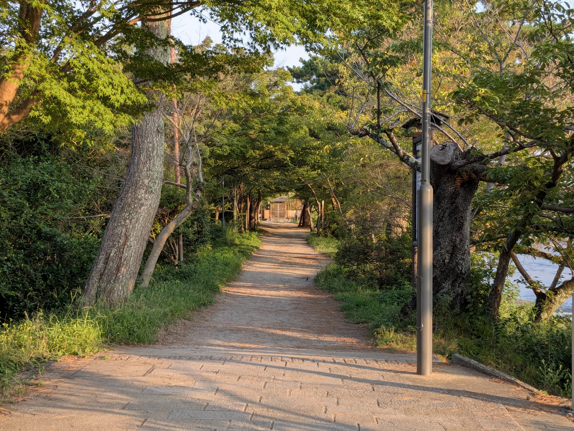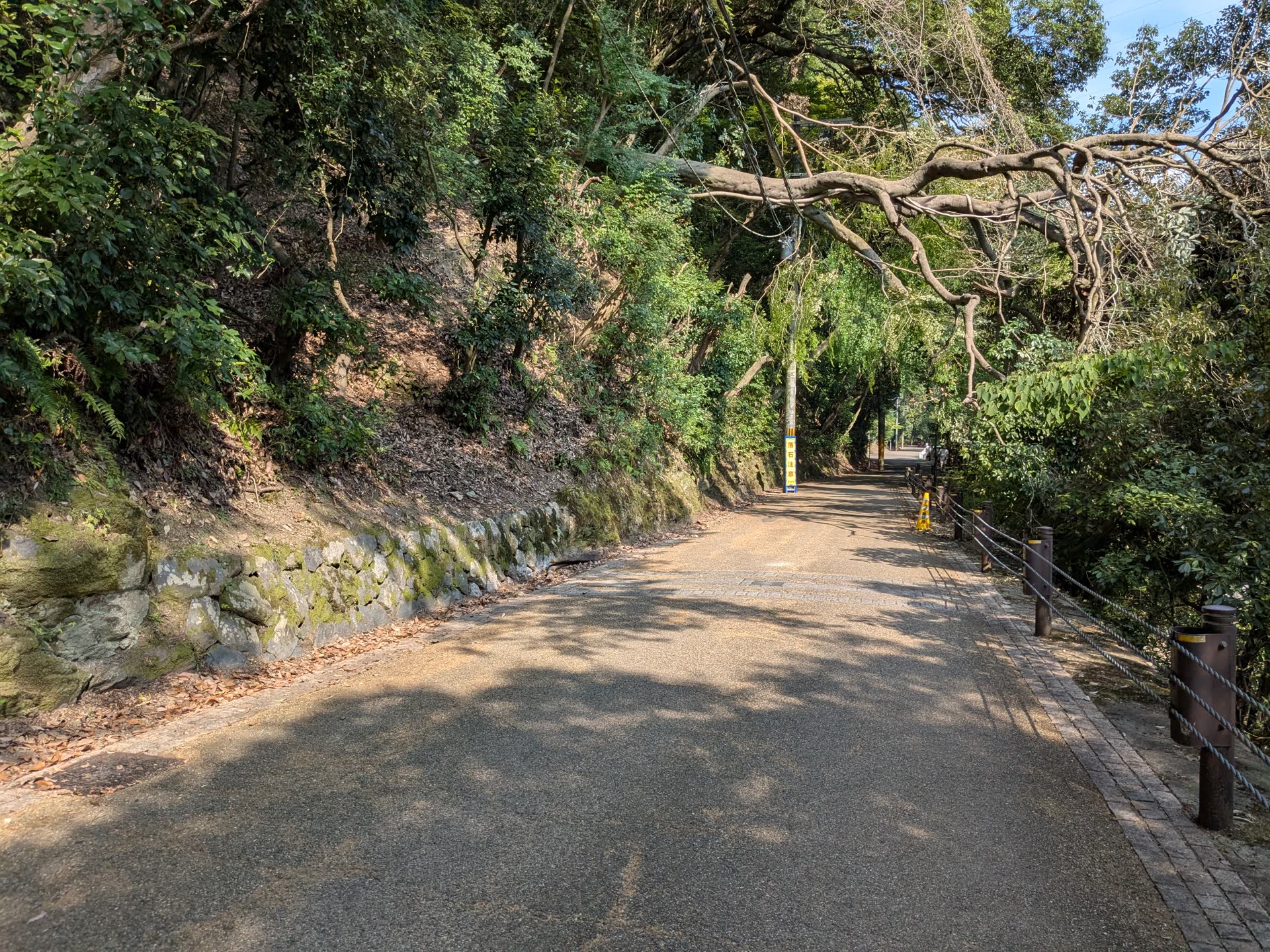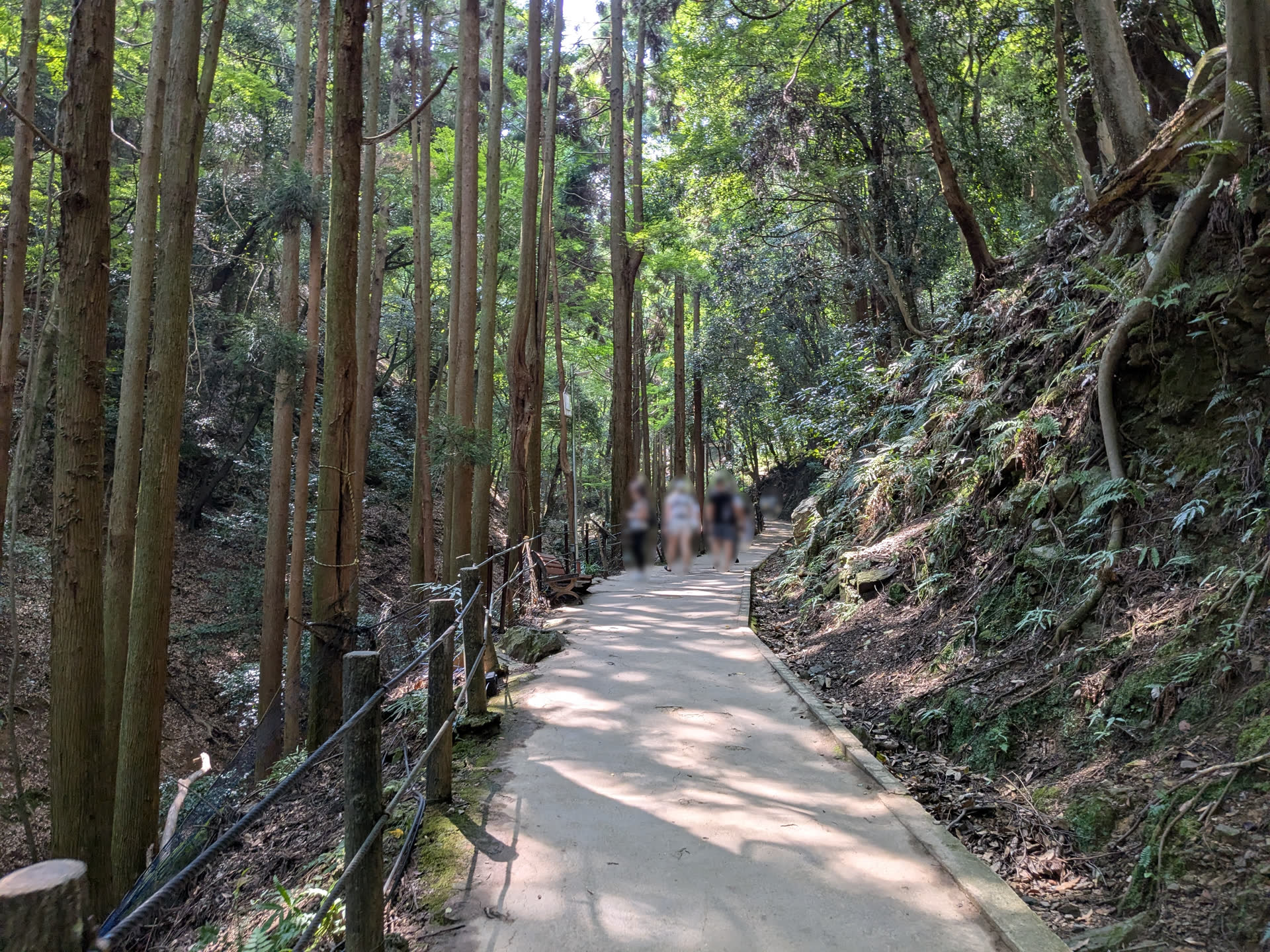 在快走到山腳的這個點時,遇到一個老阿伯,他對我說おはようございます,但我懶得說那麼長就只講おはよう(真的超不禮貌)。沒想到他走幾步後反應過來,不是譴責我沒說敬語,而是直接向我說「你好」,我回你好後他又說了「再見」、揮揮手,然後就走了,不知道他有沒有細分出我是台灣人。