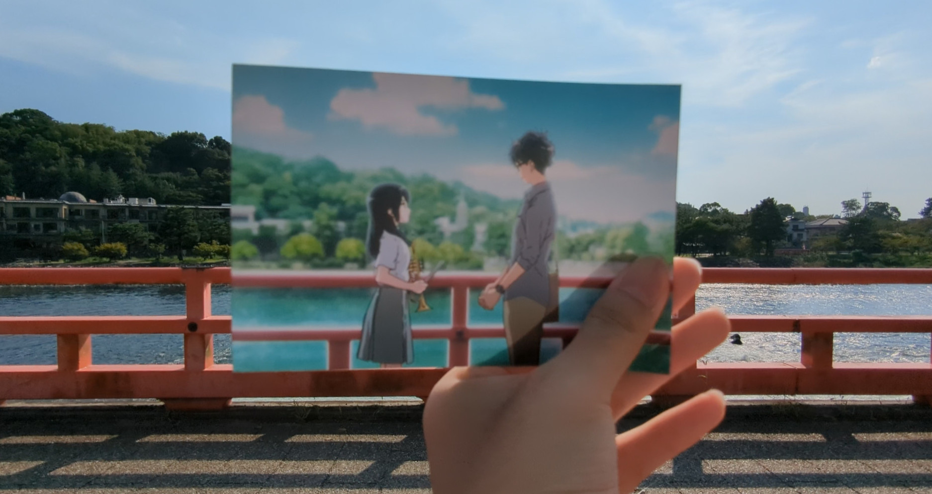 雖然都沒在這兩張內,但新大橋實際上雕像與牌子都在更右側一點,不得不承認動畫有些失誤。