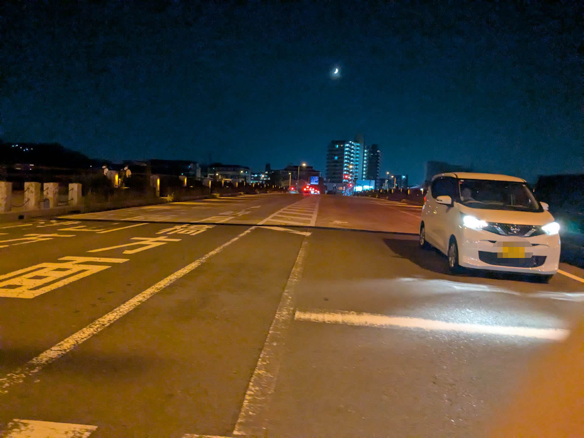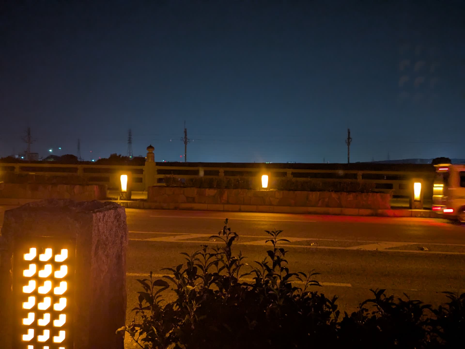 畫面看起來滿亮的,不過其實沒有路燈的地方還是很暗,我有拿出手電筒照了一下。