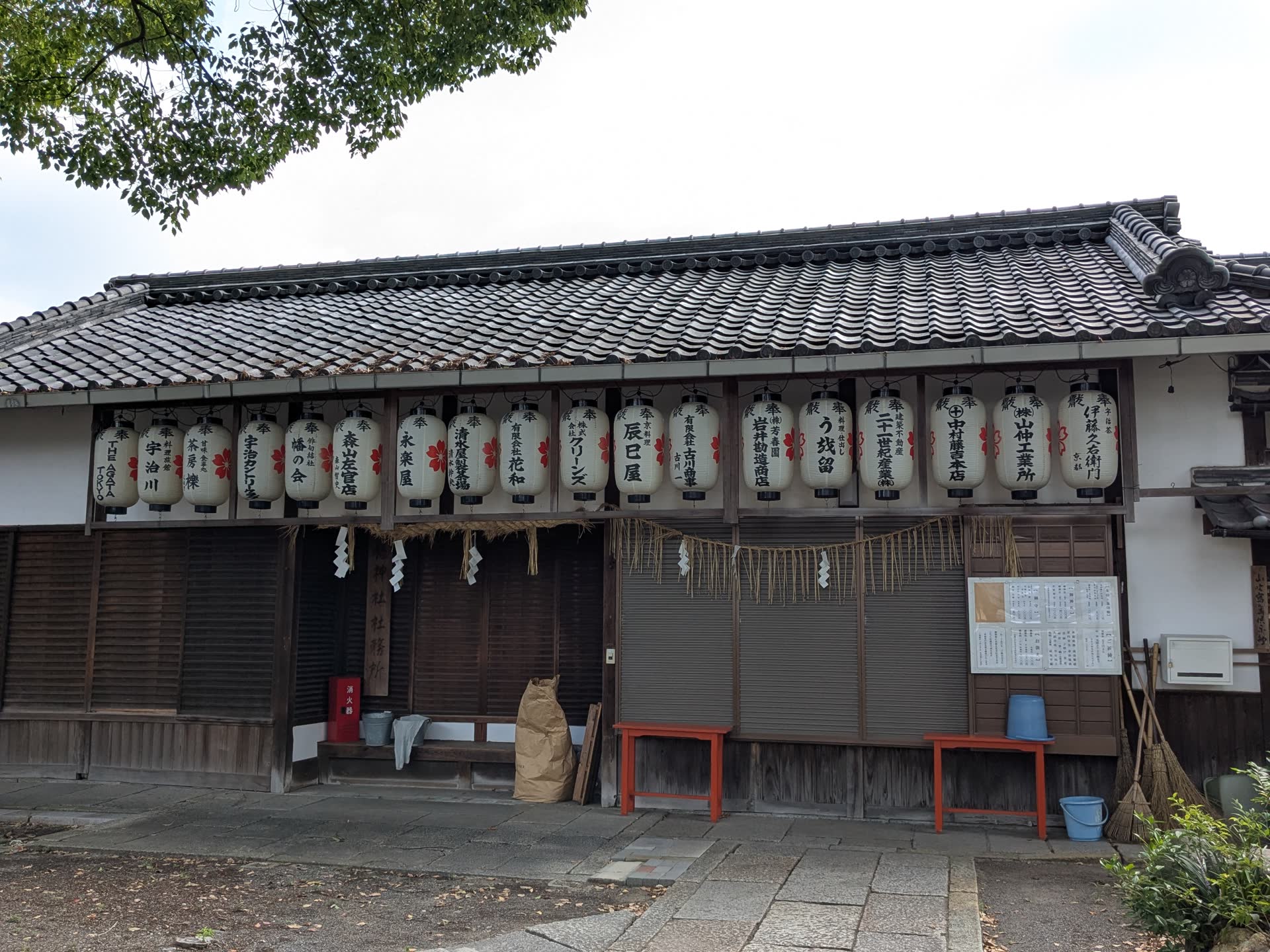 本殿與社務所前都掛滿了店家的燈籠,想得到的店家應該都有在上面。