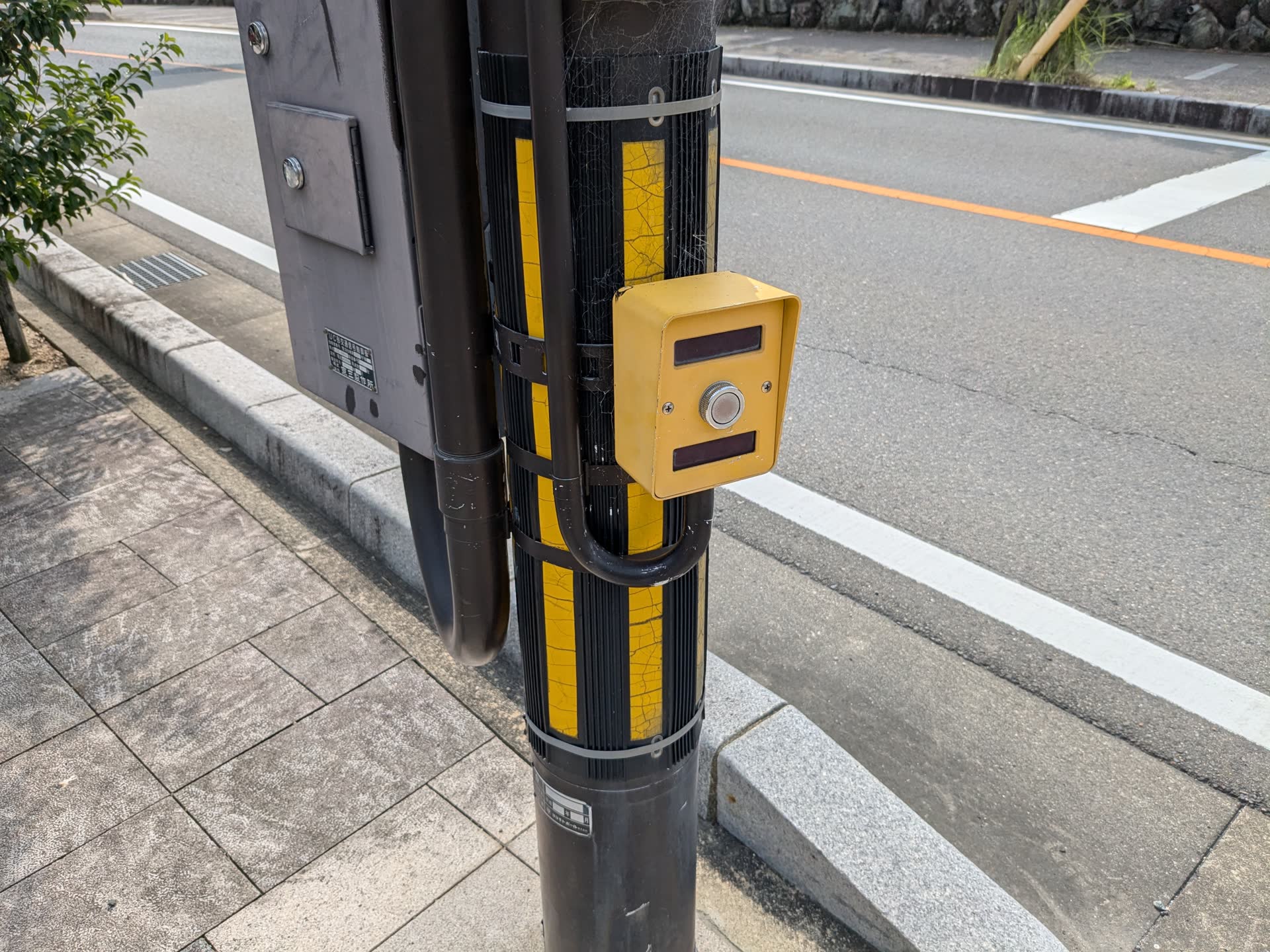 接著想說也沒事做,乾脆就在這邊再散步一下,繞一圈回民宿差不多剛好要出發。路過行人過馬路用的按鈕才想起在京阪六地藏站竟然忘了拍照,所以拿這邊的充數一下。