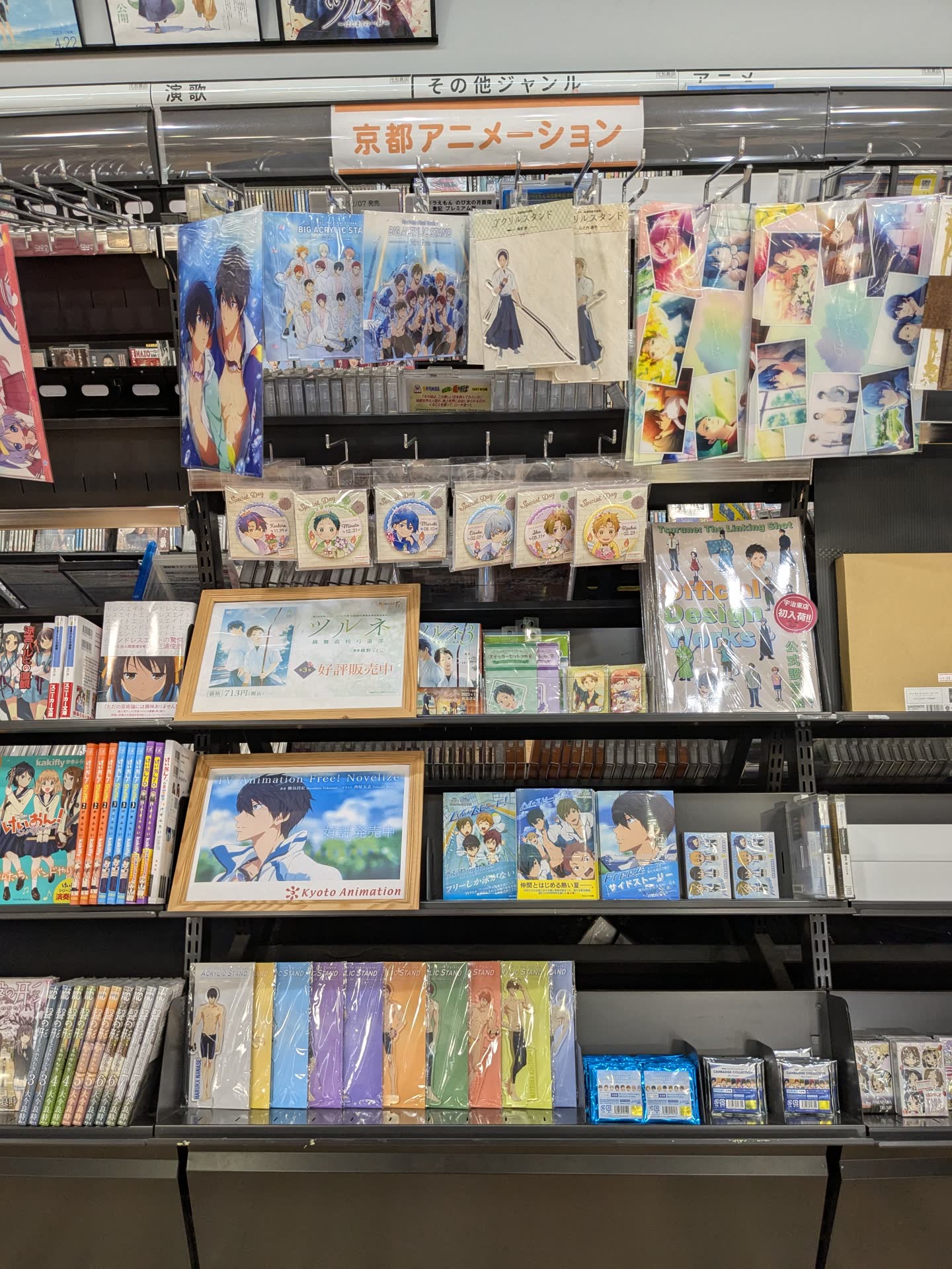 在看完原畫並為每一張拍照後,我逛了一下二樓,有很大片的區域是在賣 DVD,我找到一櫃全是京阿尼 DVD 的,老作品非常齊全,甚至 MUNTO、驚爆危機的兩部等等都有。