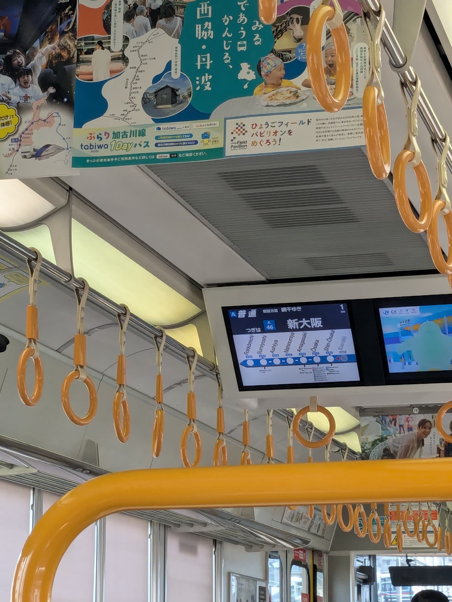 經過六地藏站有拍一下弓削眼科,不過太重複就不放圖了。在中書島換特急車後,原本想著可以坐著舒舒服服到大阪,沒想到人超多,站了一整路,滿辛苦的。