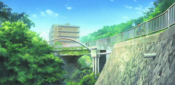 走到最高點的盡頭,準備左轉往正門所在的路時,會看到一座連通中學校與小學校的小橋,看起來滿好看的,不過並沒有出現在作品中。