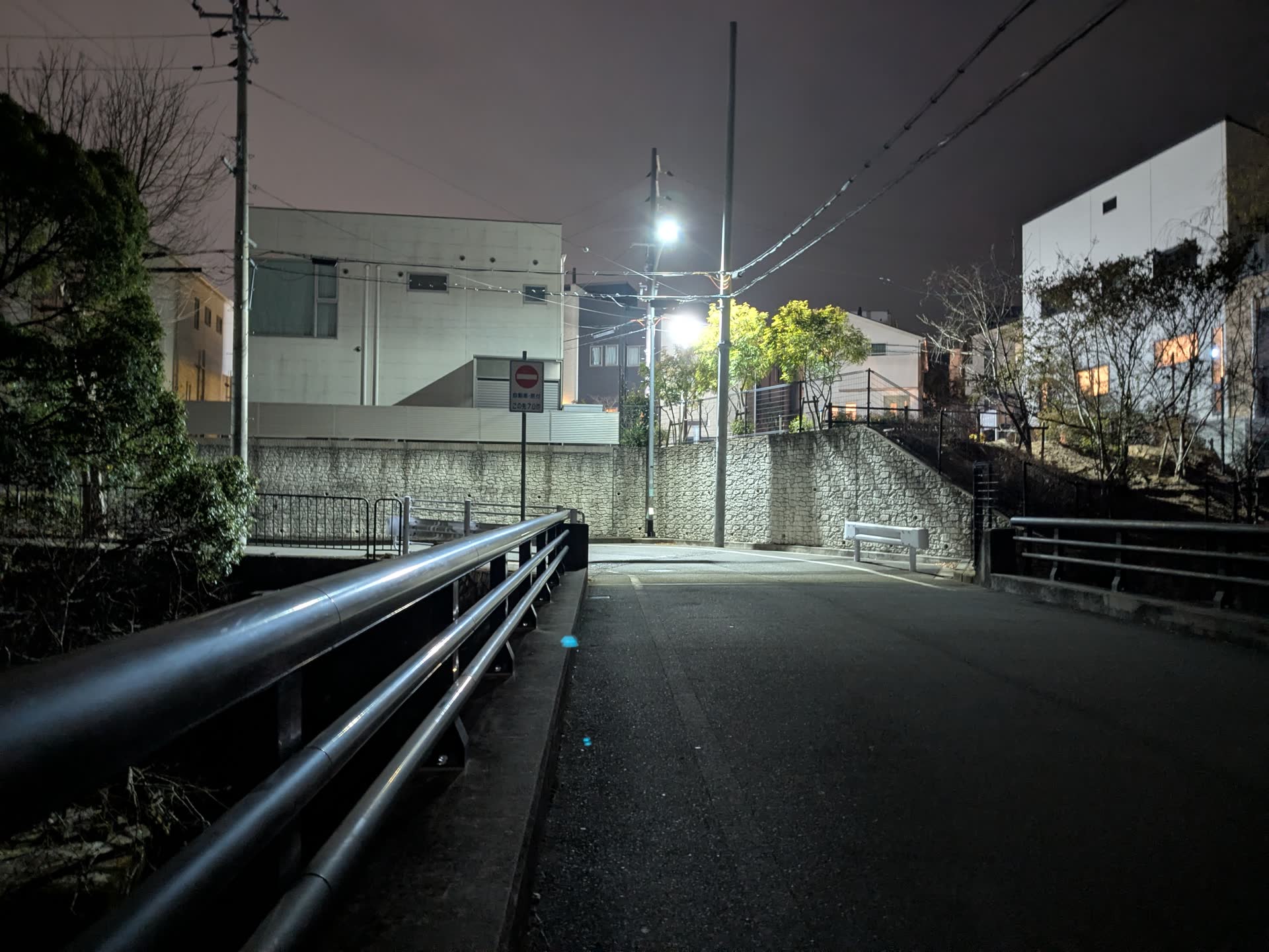 其實最一開始的規劃並沒有這部份,是我想起涼宮春日的消失中出現的是夜景,所以才想盡辦法塞進行程。原本 Austin 是預計 21:45 到神戶,而我的高速船 20:30 才到,我想就算他還要取托運行李,再怎麼說也不能讓他拉著行李等太久,所以是非常緊湊的行程,預計 21:00 到三宮,搭阪急到甲陽園 21:30 開始走到苦樂園高校,22:10 從苦樂園高校出發,23:10 走完回到三宮。當時回程是打算公車轉 JR 之類的,不過後來考量到班距還是改為走到甲陽園原路返回了。